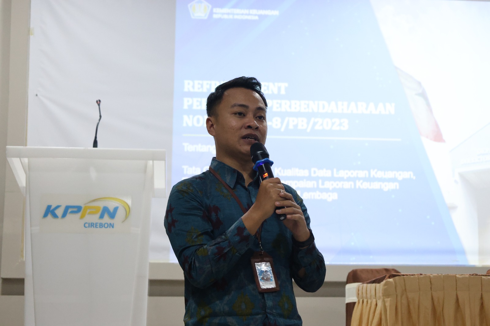 Materi disampaikan oleh Yuni Indah Setyowati dan Fahmi Nurul Islam Kosasih selaku Fungsional Pembina Teknis Perbendaharaan Negara pada KPPN Cirebon. Seluruh peserta mengikuti sesi diskusi dan tanya jawab yang dilanjutkan dengan pengisian post test dan evaluasi kegiatan.