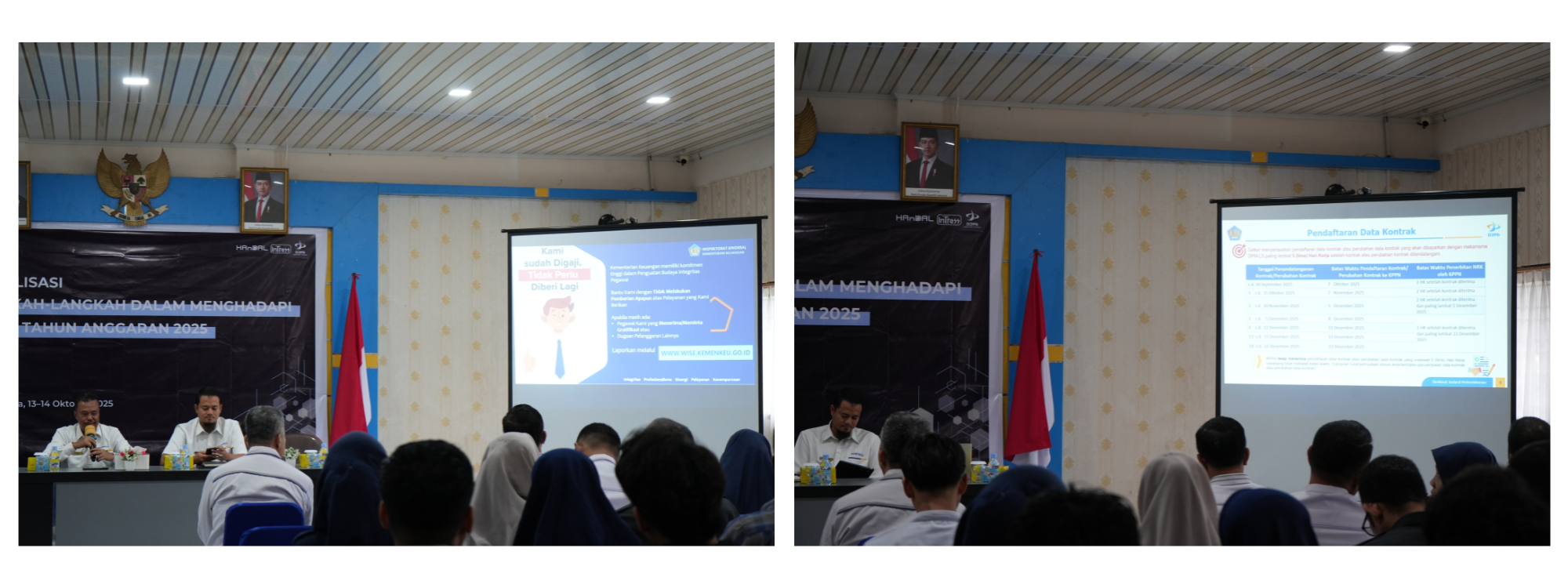 Dalam rangka persiapan menghadapi akhir tahun anggaran 2025, KPPN Dumai telah melaksanakan Sosialisasi Langkah-Langkah Dalam Menghadapi Akhir Tahun Anggaran 2025 pada tanggal 13 dan 14 Oktober 2025 secara luring di Aula KPPN Dumai. Kegiatan ini bertujuan memberikan edukasi dan pemahaman kepada pejabat perbendaharaan/pengelola keuangan satker mitra kerja terkait hal-hal penting, terutama batas-batas akhir pengajuan tagihan ke KPPN Dumai.