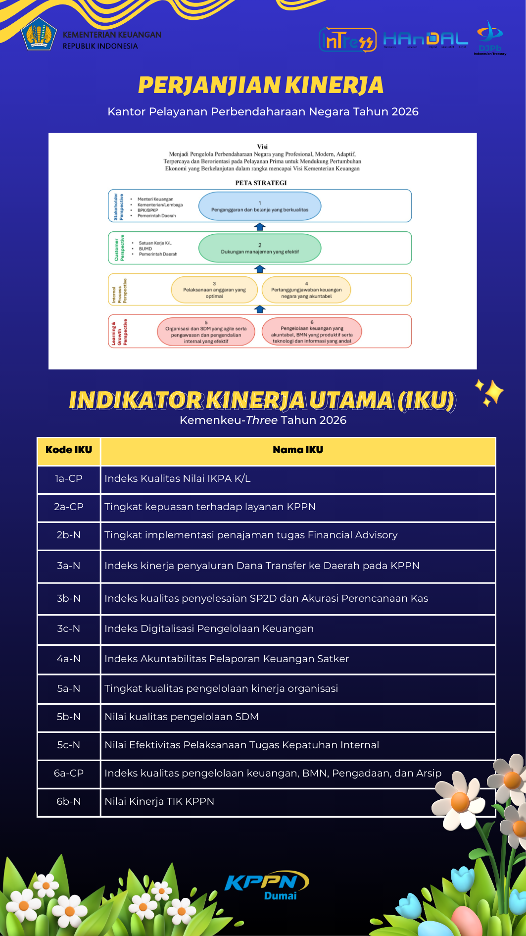 Berdasarkan Keputusan Menteri Keuangan No. 442/KMK.01/2001 tanggal 23 Juli 2001 tentang Organisasi dan Tata Kerja Direktorat Jenderal Anggaran, Kantor Perbendaharaan dan Kas Negara (KPKN) Dumai merupakan instansi vertikal Direktorat Jenderal Anggaran (DJA) Departemen Keuangan yang berada di bawah dan bertanggung jawab langsung kepada Kepala Kantor Wilayah IV Direktorat Jenderal Anggaran Pekanbaru.