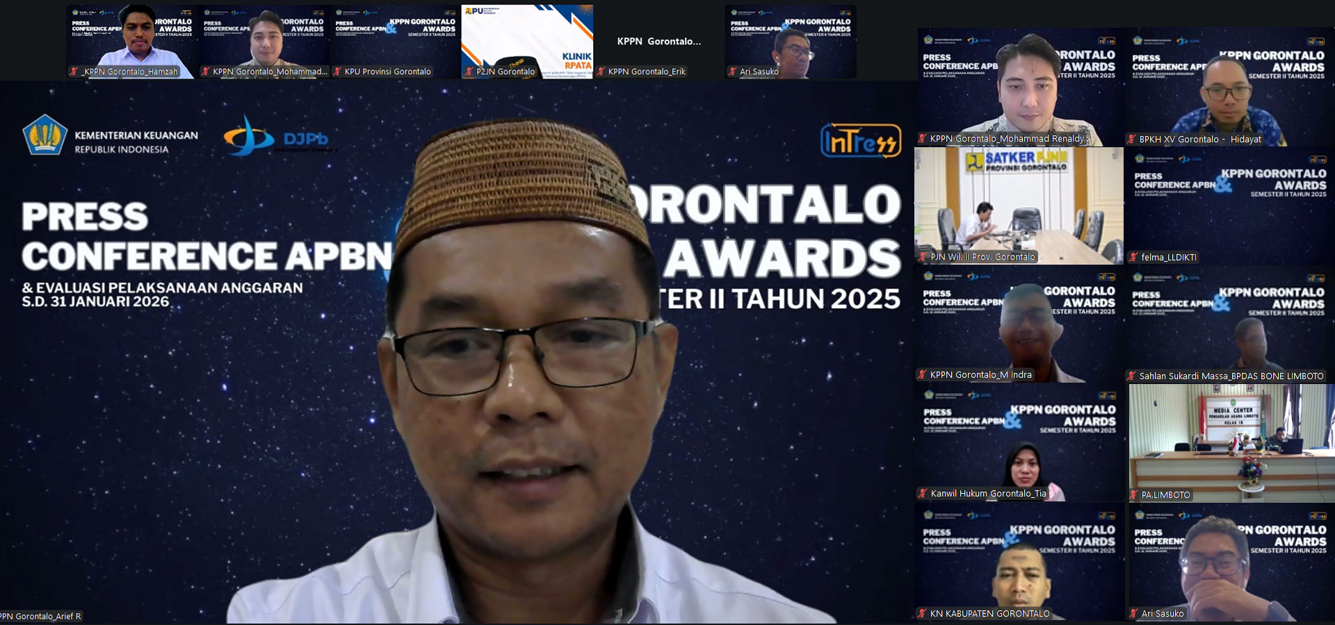 "Secara nasional, sebagaimana disampaikan oleh Menteri Keuangan, kondisi APBN tetap solid, sehat, dan adaptif dalam mendukung pertumbuhan ekonomi yang kuat dan berkelanjutan. Pada tahun 2025 perekonomian Indonesia berhasil tumbuh 5,11% yoy. Di Provinsi Gorontalo sendiri tumbuh 5,71% yoy lebih tinggi dari pertumbuhan nasional," ujar Kepala KPPN Gorontalo, Arief Rokhman dalam paparannya.