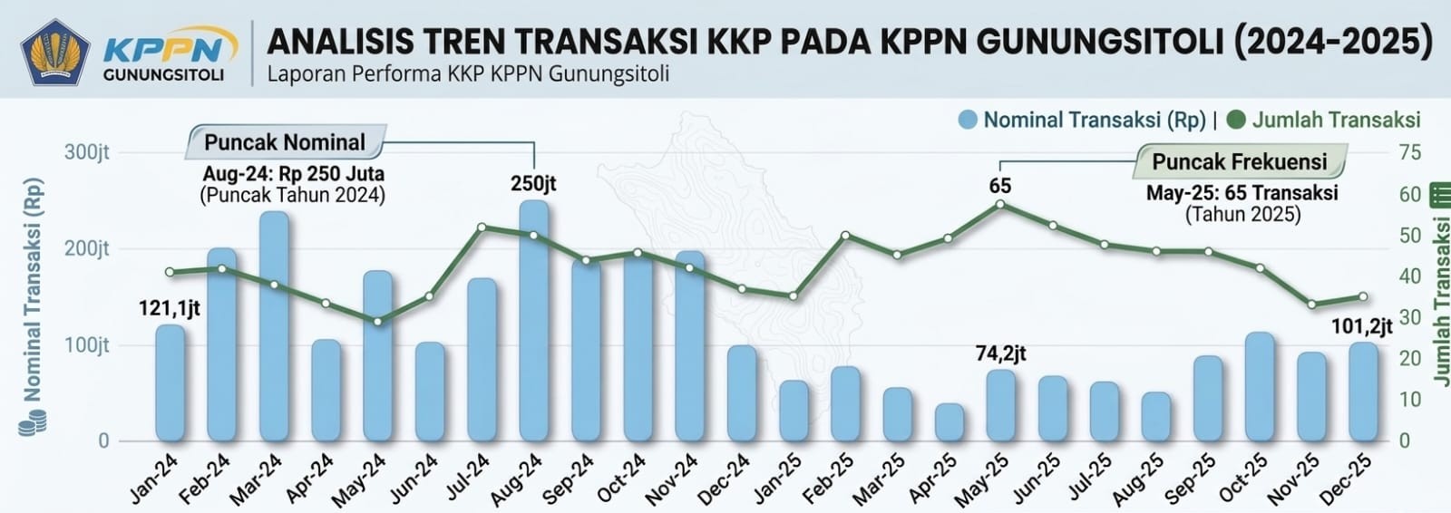 Grafik Nilai dan Jumlah Transaksi KKP KPPN Gunungsitoli (2024–2025)