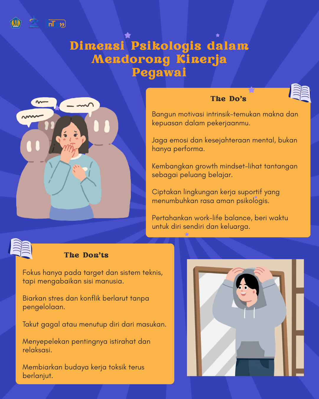 Dengan demikian, jelas bahwa dimensi psikologis bukan sekedar aspek tambahan, melainkan komponen inti dalam membangun kinerja pegawai. Organisasi perlu mengembangkan strategi manajemen yang tidak hanya berfokus pada keterampilan teknis, tetapi juga pada kesejahteraan mental, motivasi intrinsik, kestabilan emosi, serta pembentukan pola pikir positif. Investasi pada aspek psikologis ini akan menghasilkan tenaga kerja yang lebih produktif, adaptif, dan berkomitmen tinggi, sehingga tujuan organisasi dapat tercapai secara berkelanjutan.