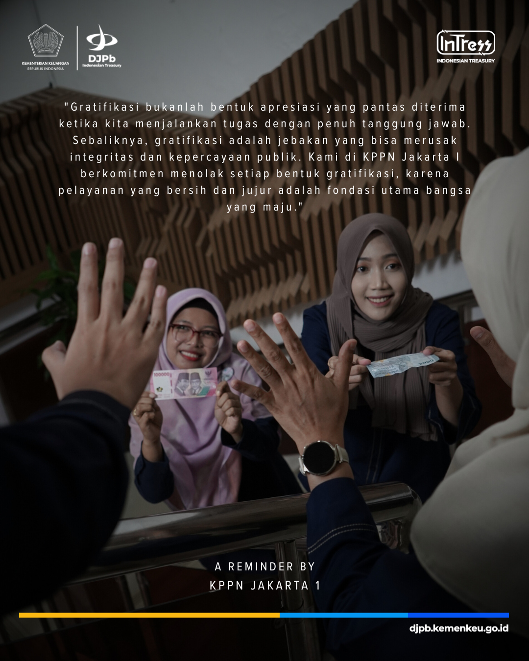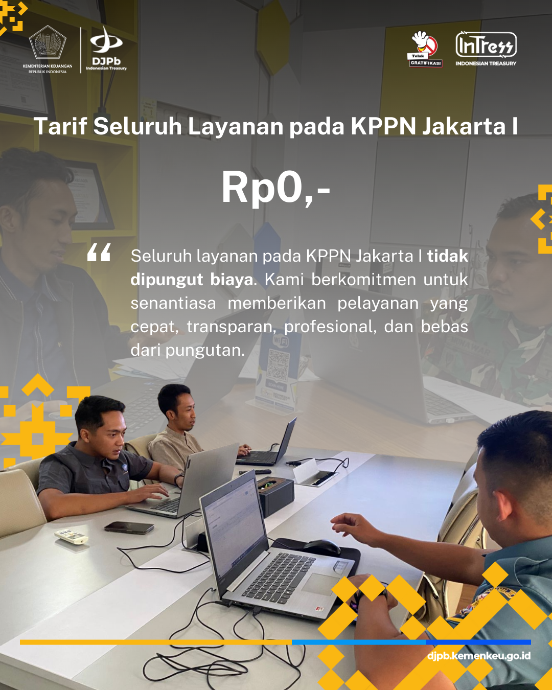Dalam rangka keberlanjutan pembangunan zona integritas menuju WBK/WBBM, segenap Pimpinan dan Pegawai pada KPPN Jakarta I berkomitmen untuk menegakkan integritas dan layanan berkualitas yang unggul serta tanpa biaya