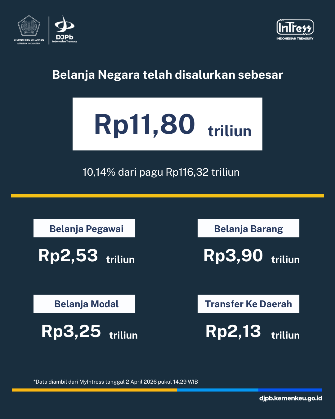 JAKARTA - KPPN Jakarta I secara konsisten menegaskan komitmennya dalam mewujudkan transparansi dan akuntabilitas pengelolaan keuangan negara. Komitmen tersebut diwujudkan melalui penyampaian informasi realisasi Anggaran Pendapatan dan Belanja Negara (APBN) secara berkala. Publikasi ini menjadi wujud keterbukaan kepada masyarakat serta memberikan gambaran aktual mengenai kinerja penyaluran APBN. Hingga Maret 2026, berikut disajikan perkembangan realisasi penyaluran APBN di wilayah kerja KPPN Jakarta I.