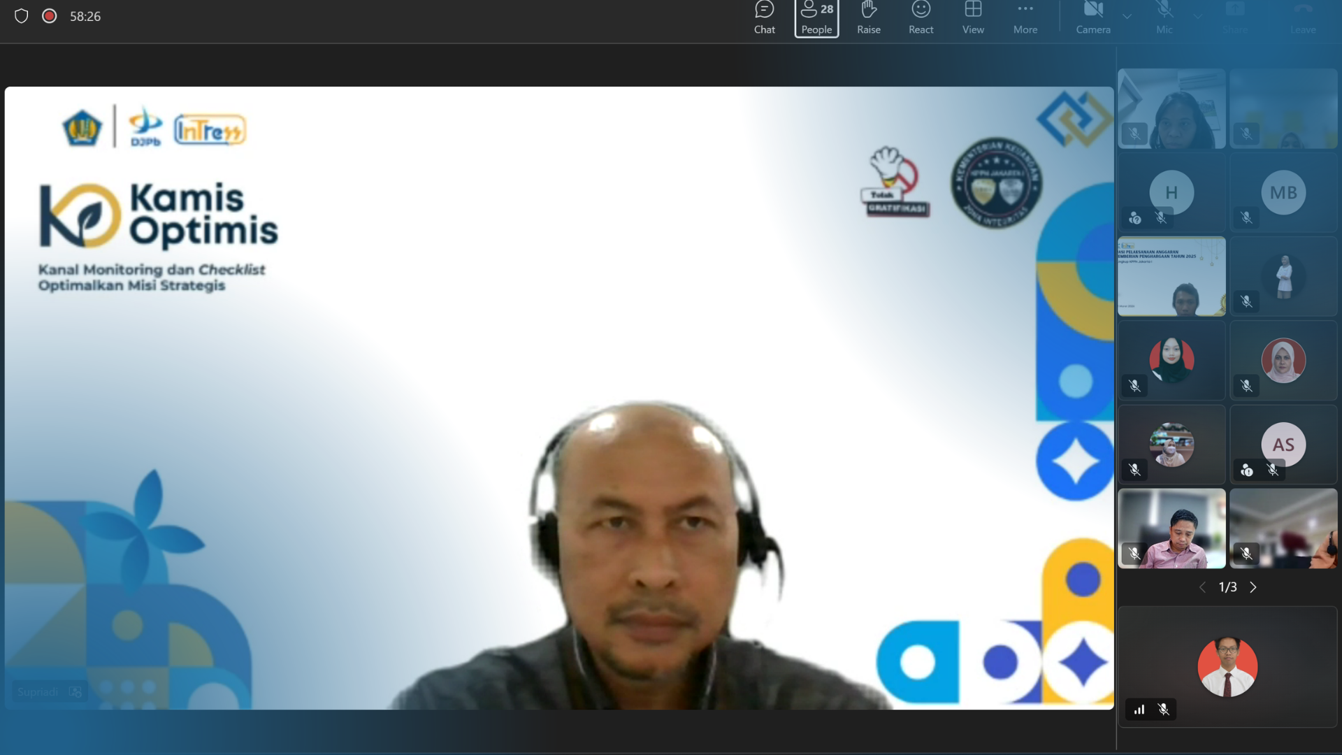 JAKARTA - Komitmen untuk terus meningkatkan kualitas kinerja dan pelayanan kembali ditegaskan oleh KPPN Jakarta I melalui kegiatan Gugus Kendali Mutu yang dilaksanakan secara daring pada Kamis (2/4). Kegiatan ini menjadi momentum penting untuk memperkuat pemahaman sekaligus menyelaraskan langkah seluruh pegawai, khususnya terkait internalisasi manual Indikator Kinerja Utama (IKI) Tahun 2026 serta implementasi Standar Operasional Prosedur (SOP) terbaru pada Seksi Pencairan Dana.