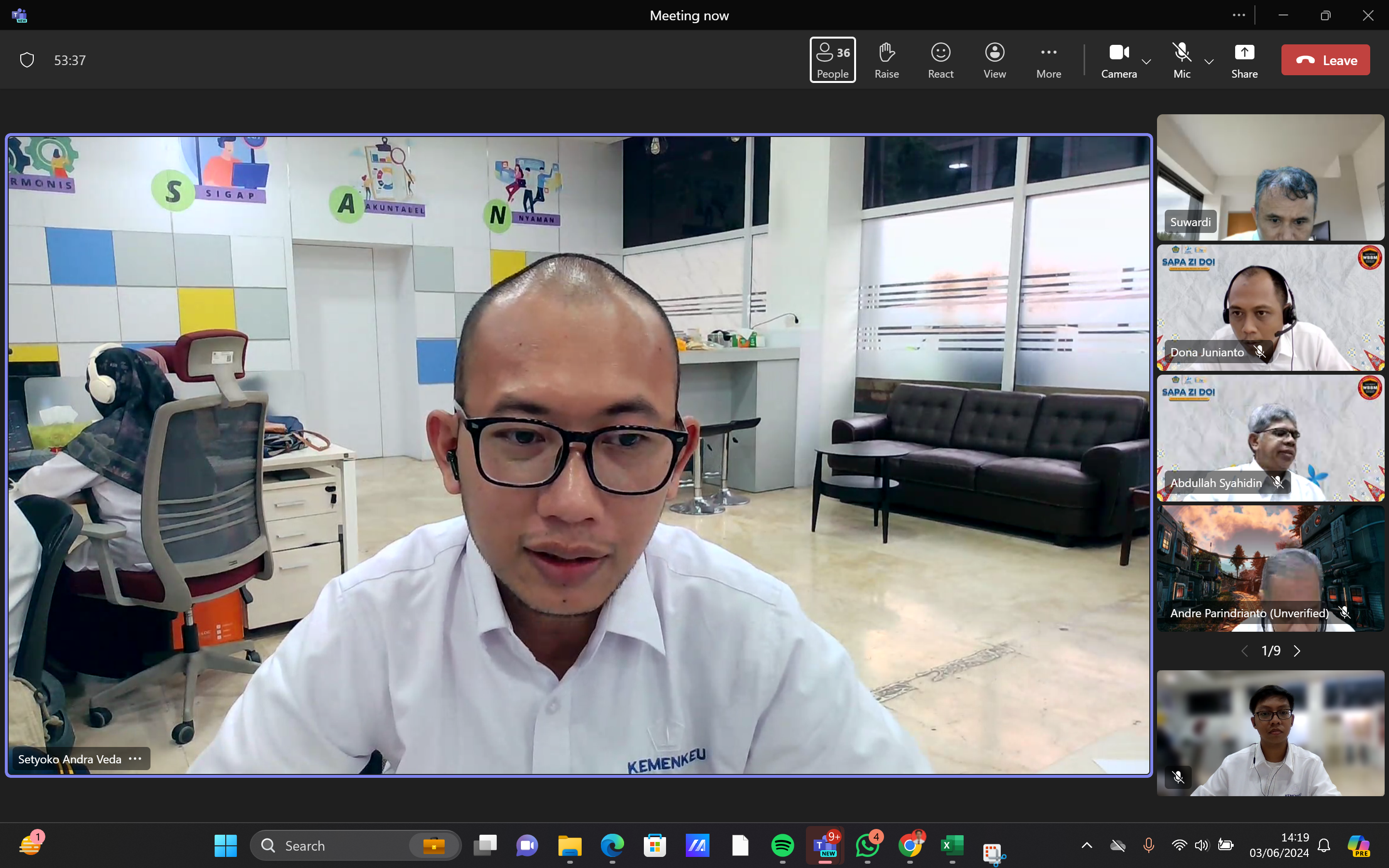 Kegiatan dilaksanakan secara daring melalui Aplikasi Ms Teams. Bertindak sebagai narasumber adalah PTPN Mahir KPPN Jakarta I, Setyoko Andra Veda. Pada kegiatan ini, Kepala KPPN Jakarta I menyampaikan agar seluruh pegawai menyimak dengan baik karena ilmu pengolahan data penting dimiliki para pegawai ke depannya. Narasumber mengawali penyampaian materi dengan pengenalan "Apa itu data?" dan Microsoft Excel. Selanjutnya, narasumber mengenalkan bentuk dari Pivot Table. Kegiatan berlangsung dengan lancar dan meriah. Selanjutnya, kegiatan akan disambung pada sesi kedua yang direncanakan akan dilaksanakan pada Kamis (06/06).