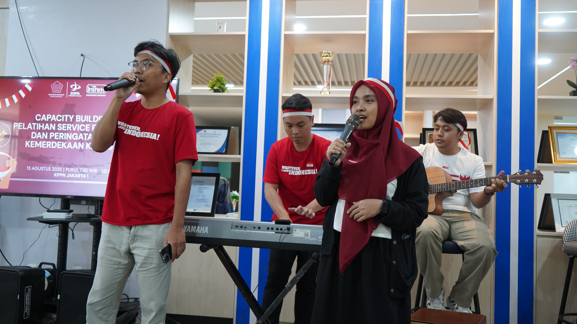 JAKARTA - Pada Jumat (15/08) suasana di Ruang Kolaborasi KPPN Jakarta I terasa berbeda. Pegawai hadir dengan dresscode merah putih, menandai semangat kebangsaan sekaligus kebersamaan dalam kegiatan Capacity Building, Pelatihan Service Excellent, dan perayaan HUT Kemerdekaan ke-80 Republik Indonesia. Acara ini menjadi ruang bagi pegawai untuk tidak hanya belajar meningkatkan kualitas pelayanan, tetapi juga menguatkan solidaritas, kebersamaan, dan nilai integritas yang menjadi fondasi kerja di Kementerian Keuangan.