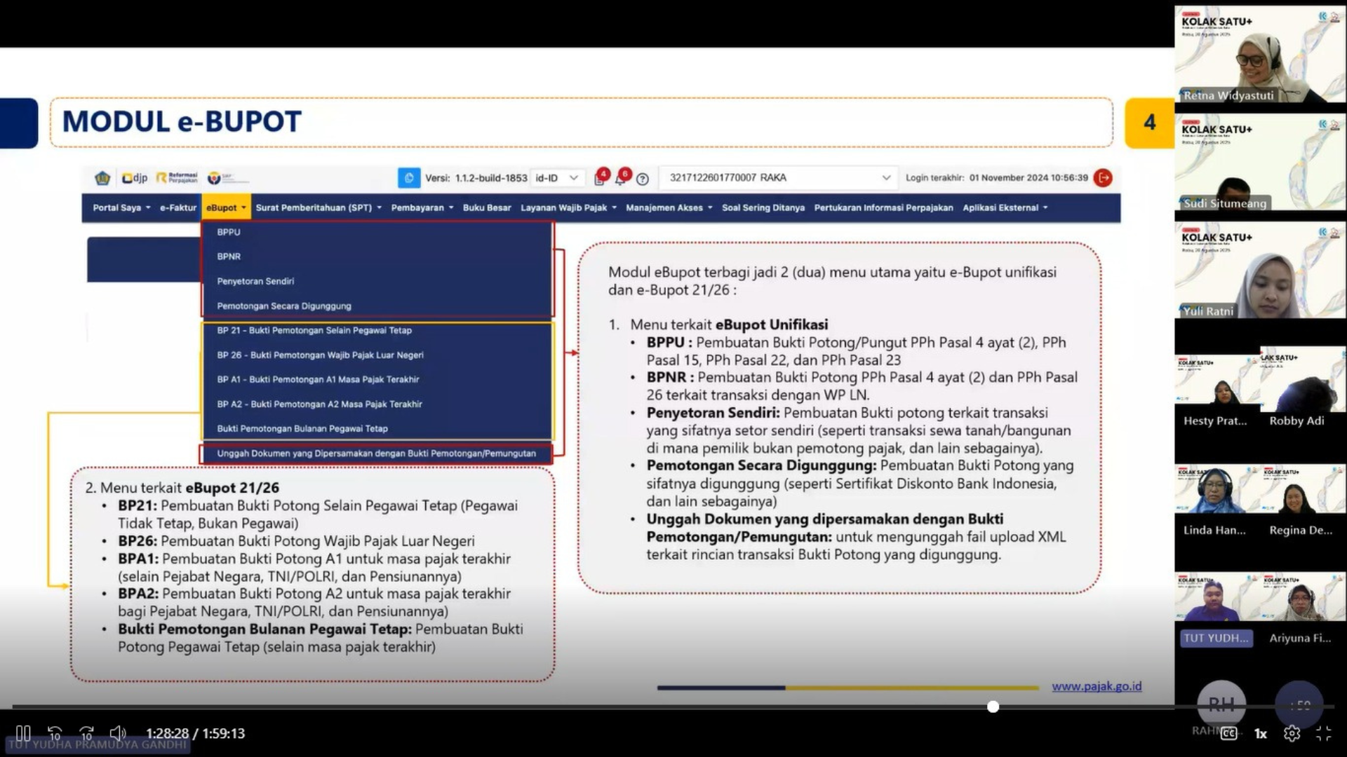 Sesi berikutnya dibawakan oleh Tut Yudha Pramudya Gandhi, Asisten Penyuluh Pajak Mahir KPP Pratama Jakarta Gambir Satu, yang membahas tentang kewajiban perpajakan instansi pemerintah. Salah satu topik menarik adalah mekanisme penggabungan NPWP antara suami dan istri. Meskipun opsional, penggabungan ini memberikan sejumlah keuntungan administratif. Selain itu, Yudha juga mengulas penerapan skema Tarif Efektif Rata-rata (TER) untuk PPh 21, yang dirancang untuk menyederhanakan pemotongan pajak penghasilan bagi pegawai.