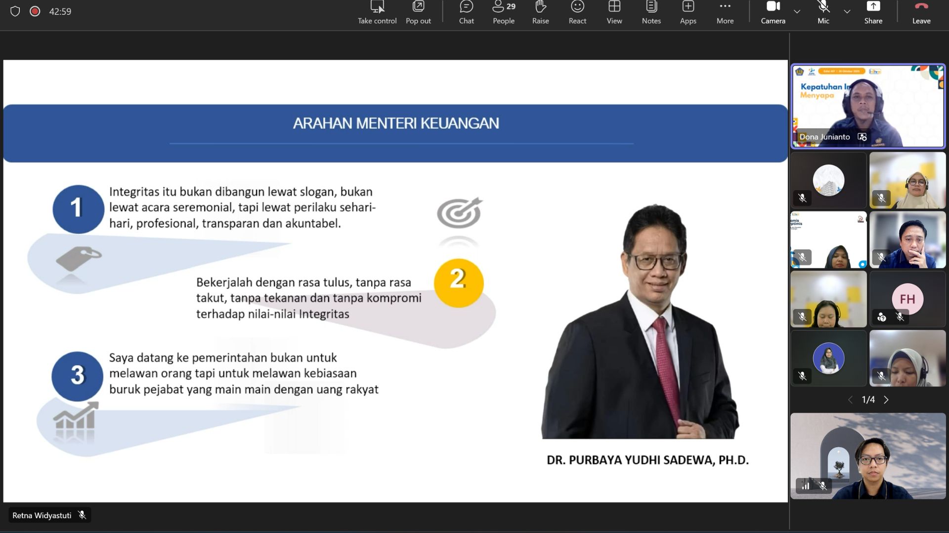 Kegiatan yang merupakan bagian dari program Rabu Belajar ini diikuti oleh Kepala KPPN Jakarta I beserta seluruh pejabat dan pegawai. Kegiatan dibuka oleh Kepala Seksi MSKI, Bapak Dona Junianto, yang menyampaikan apresiasi atas kehadiran para pegawai di tengah kesibukan pekerjaan, khususnya dalam penyelesaian proses pembayaran Tunjangan Hari Raya (THR).