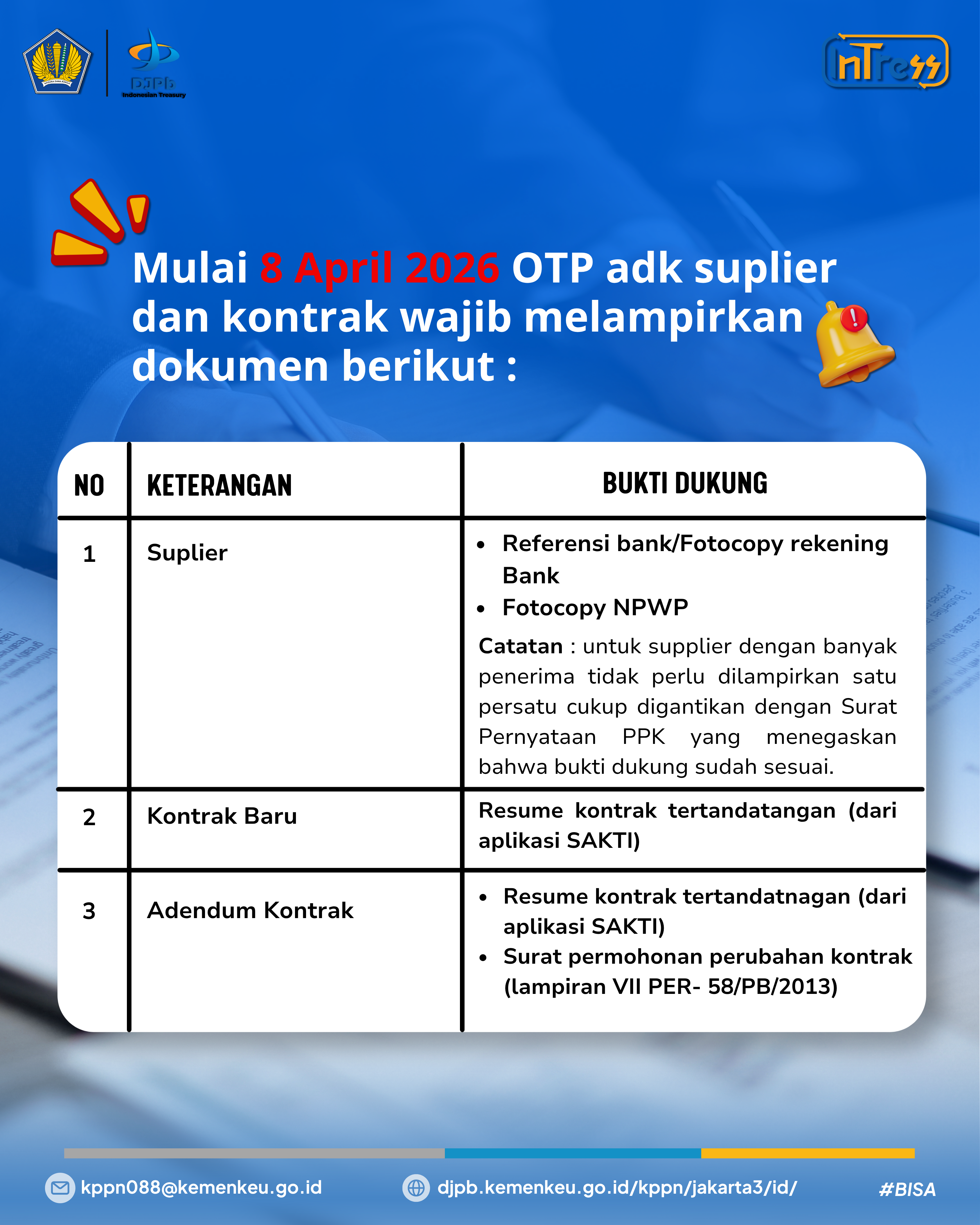 | Dispensasi Pendaftaran Data Kontrak |