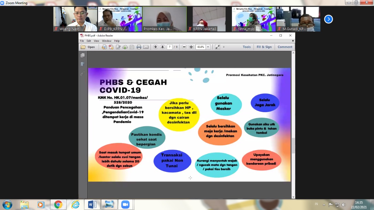 Dalam rangka Hari Bakti Perbendaharaan ke-17, KPPN Jakarta III menyelenggarakan Webinar Kampanye Kesehatan Virtual. Webinar bertemakan “Hidup Sehat di Masa Pandemi” dilaksanakan pada Hari Senin tanggal 22 Februari 2021 secara virtual melalui zoom meeting pada pukul 14.00 s.d. 15.20 WIB. Peserta dari Webinar ini yaitu para pejabat dan pegawai KPPN Jakarta III, para pegawai On Job Training (OJT) di KPPN Jakarta III, serta mahasiswa Praktik Kerja Lapangan (PKL) dari PKN STAN di KPPN Jakarta III.
