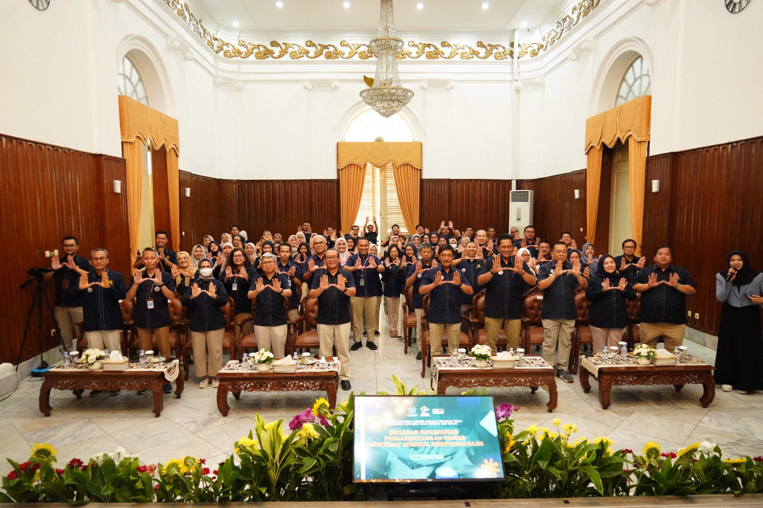 Pada sesi yang dilaksanakan di Gedung Jusuf Anwar, Rabu (23/10), Deklarasi Komitmen Implementasi Pengarusutamaan Gender DJPb menjadi kegiatan utama. Dalam arahannya pada kesempatan tersebut, Direktur Jenderal Perbendaharaan Astera Primanto Bhakti menyampaikan apresiasi positif atas terlaksananya workshop ini.