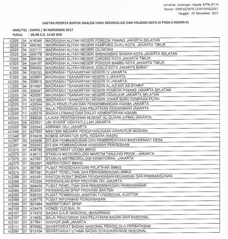 bersama ini kami sampaikan Undangan Kepala KPPN Jakarta IV nomor UND-62/WPB.12/KP.0440/2017 tanggal 24 November 2017