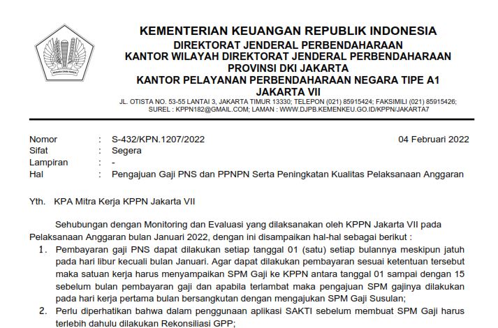 PENGAJUAN GAJI PNS DAN PPNPN SERTA PENINGKATAN KUALITAS PELAKSANAAN ANGGARAN