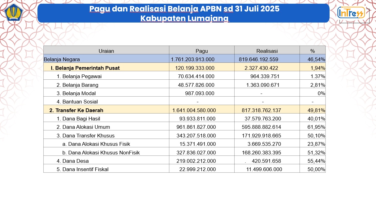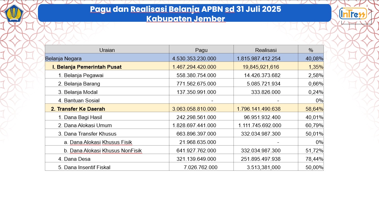 PRESS RELEASE APBN KPPN JEMBER PERIODE JULI 2025