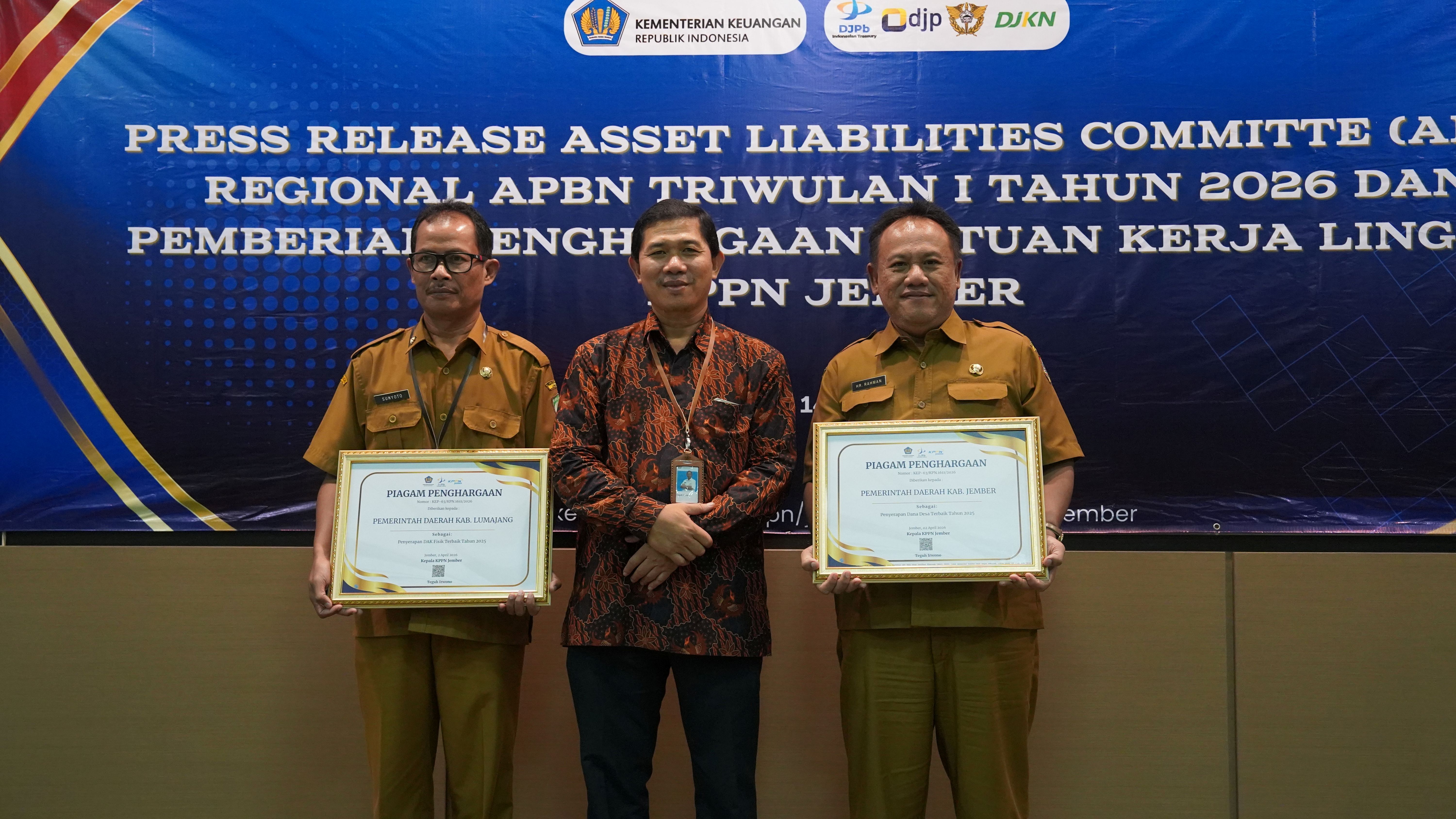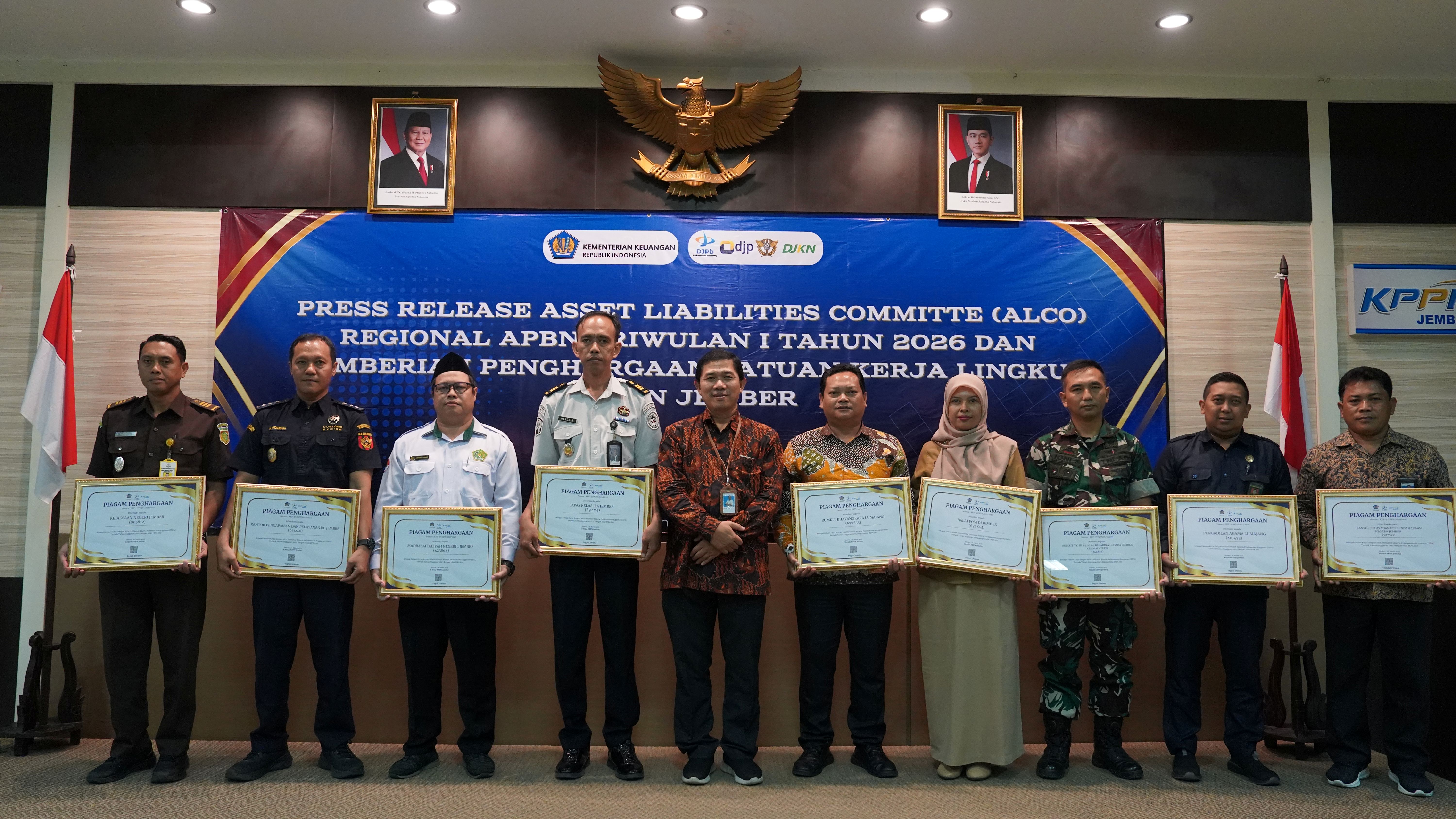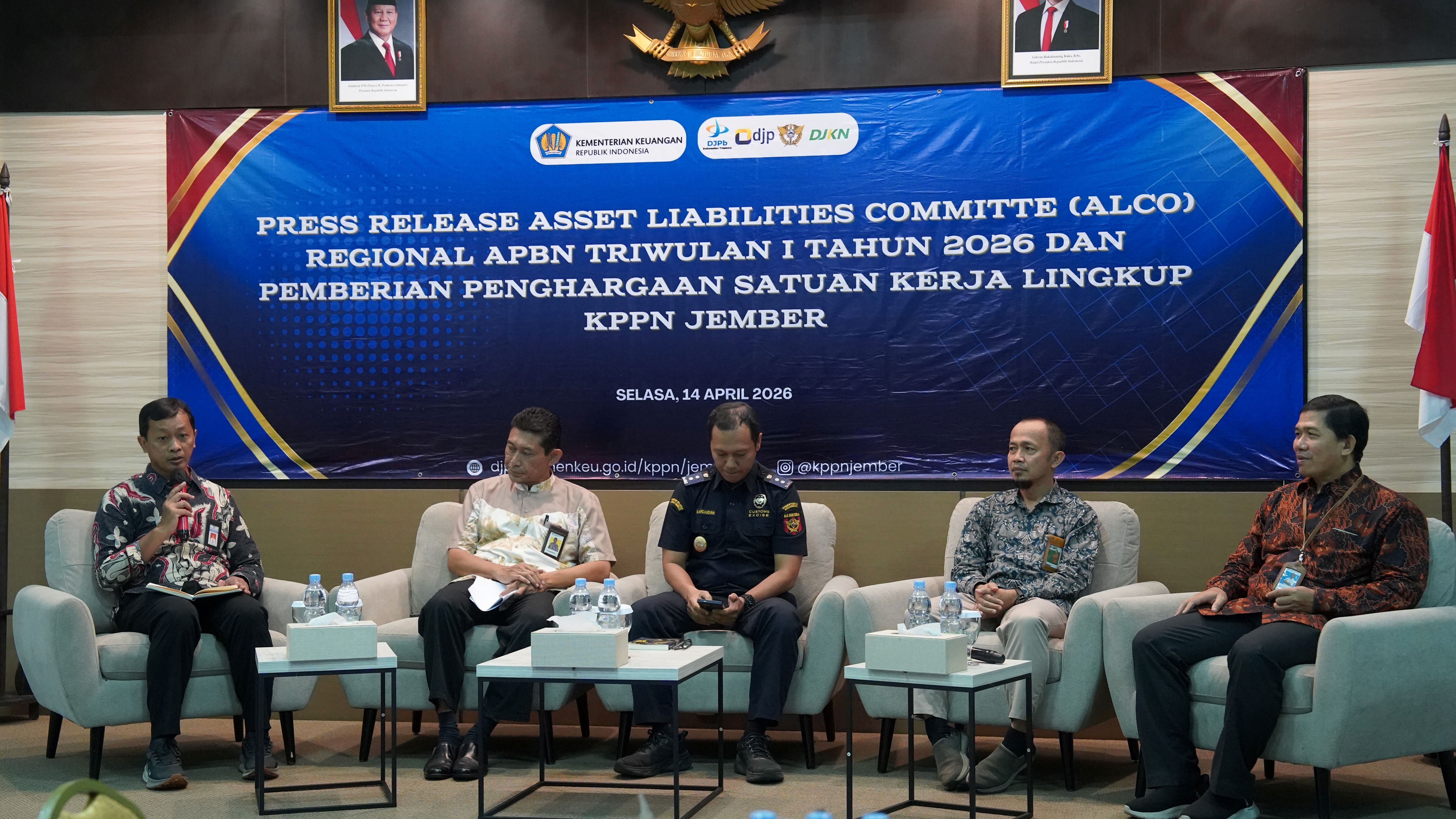 Selasa, 14 April 2026 bertempat di Aula lantai 2 Kantor Pelayanan Perbendaharaan Negara (KPPN) Tipe A1 Jember, Pimpinan Satuan Kerja atau yang mewakili satuan kerja mitra KPPN Jember menghadiri acara Press Release Asset Liabilities Committee (ALCO) TW I Tahun Anggaran 2026 dan Pemberian Penghargaan Kinerja Satuan Kerja 2025.