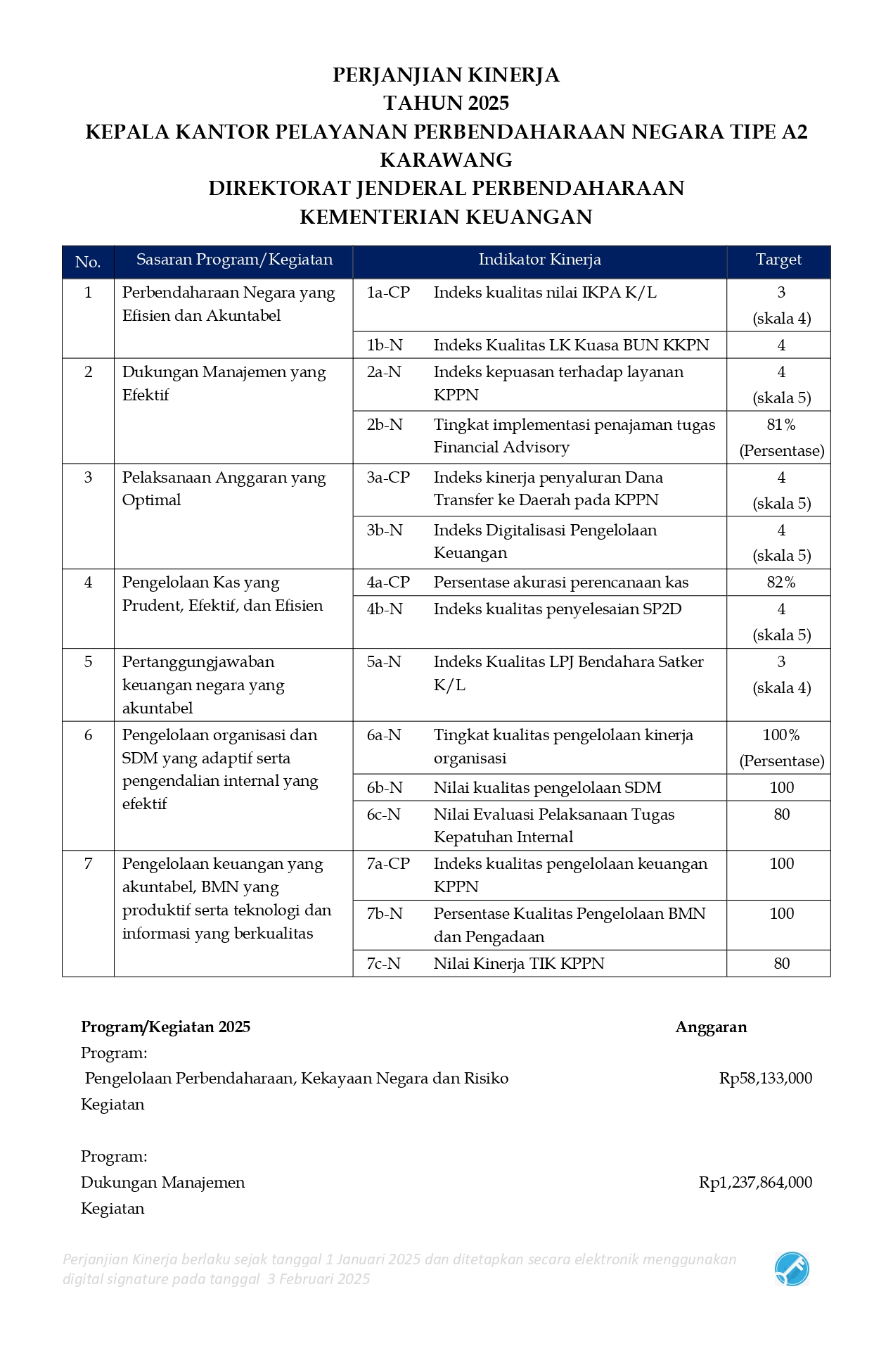 Dalam Rangka Menjaga Standar Pelayanan, KPPN Karawang telah melaksanakan Survei Kepuasan Masyarakat terhadap layanan KPPN Karawang pada September 2025.