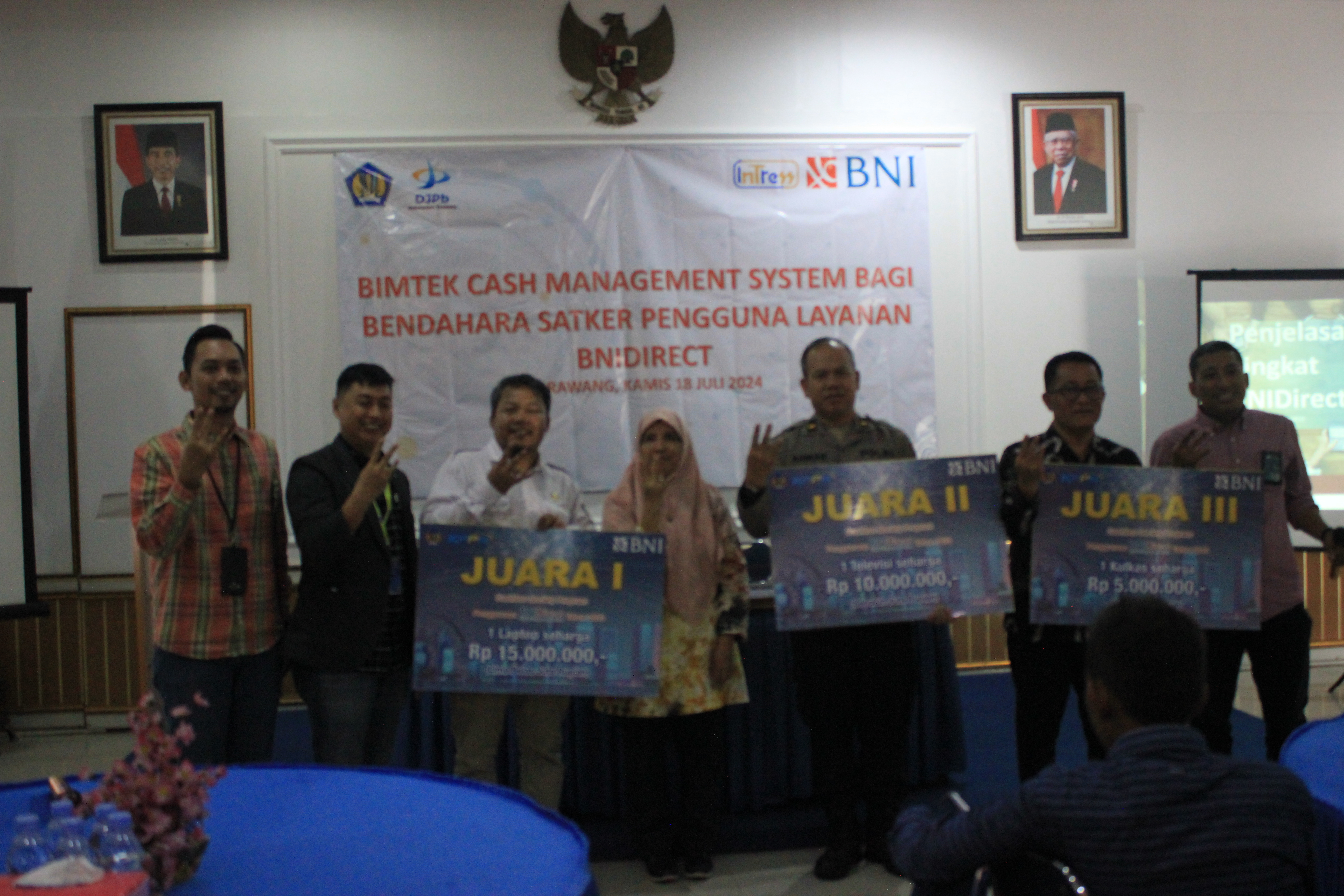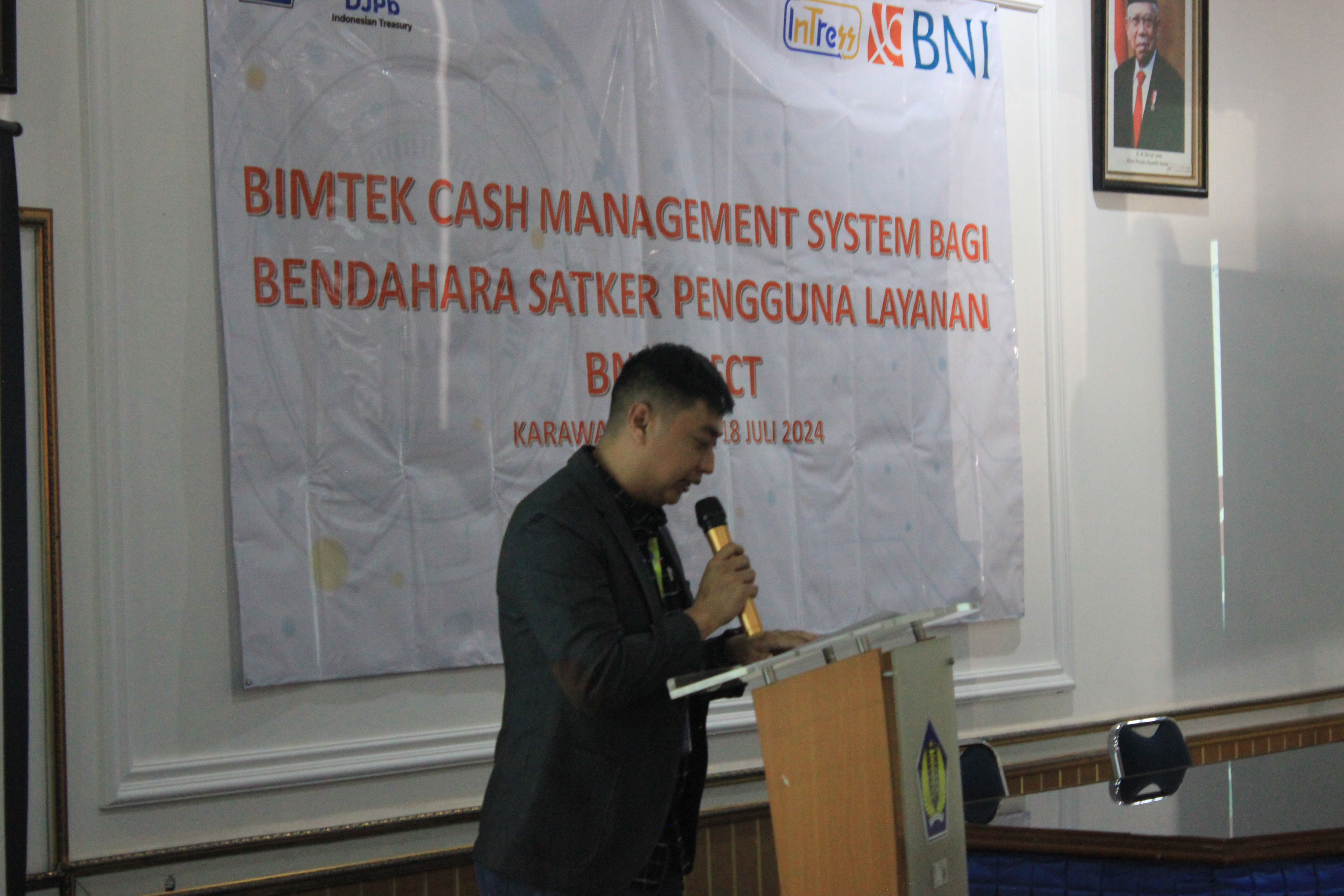 Dengan semangat percepatan implementasi transaksi non tunai di seluruh kementerian/lembaga dan pemerintah daerah, para bendahara pengeluaran diharapkan secara aktif ikut menggunakan Cash Management System (CMS) pada masing-masing bank sesuai rekening bendahara pengeluaran satker , hal tersebut disampaikan oleh Kepala KPPN Karawang pada saat membuka acara Bimtek Cash Management untuk satker dengan rekening di BNI yang dilaksanakan pada hari kamis tanggal 18 Juli 2024.