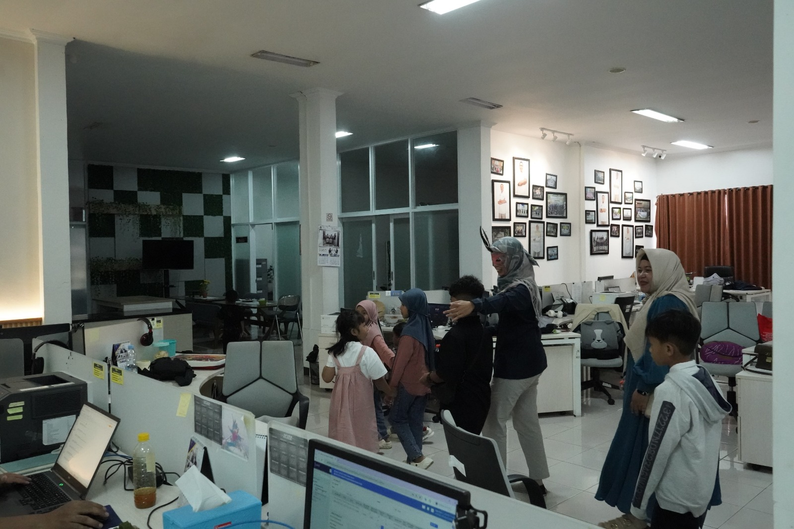 Setelah itu, seluruh keluarga pegawai diajak mengikuti office tour, mengenal lebih dekat lingkungan kerja orang tua mereka. Anak-anak tampak antusias melihat berbagai ruangan dan aktivitas di kantor.
