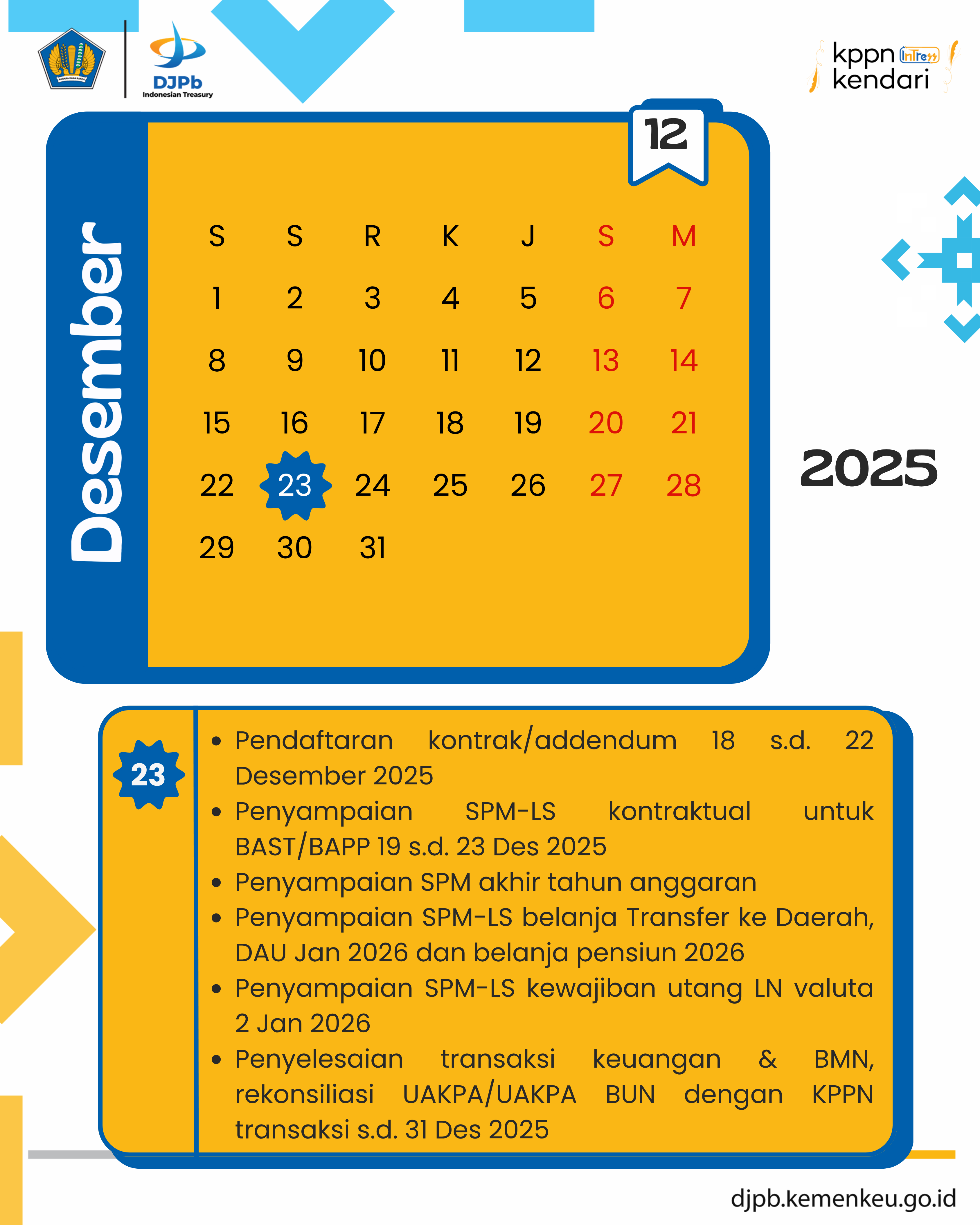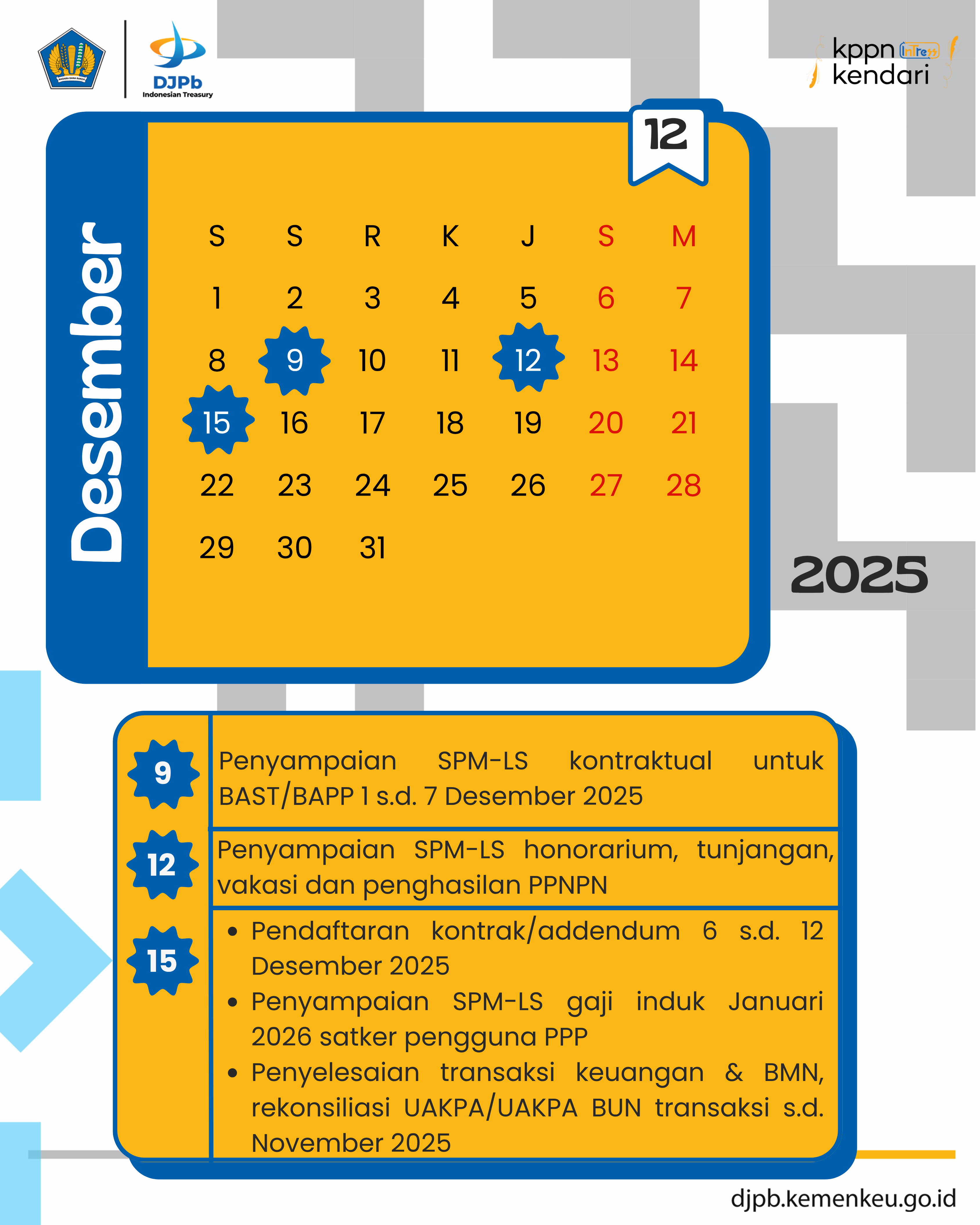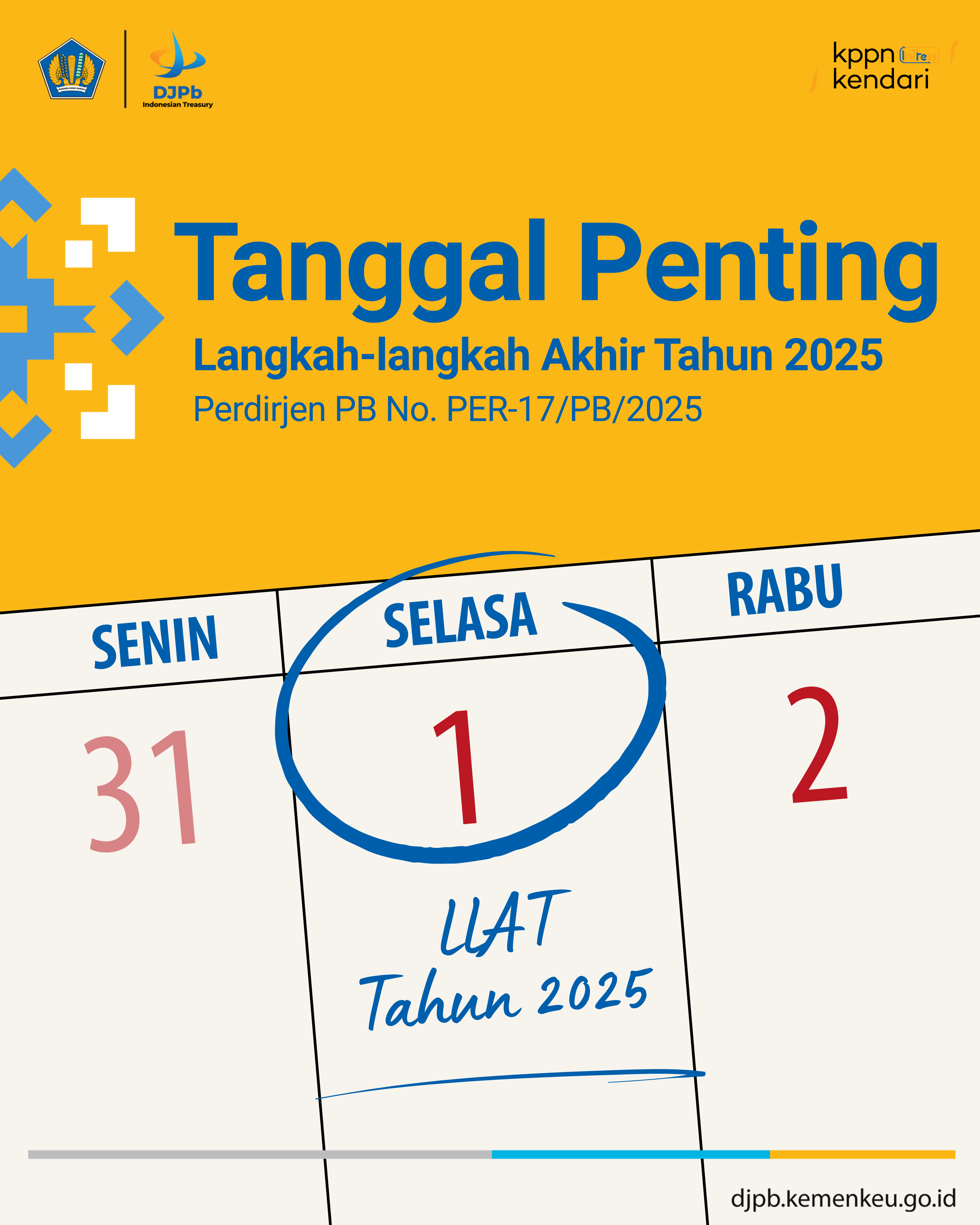 Direktorat Jenderal Perbendaharaan Kementerian Keuangan telah menetapkan Perdirjen Nomor PER-17/PB/2025 tentang Langkah-Langkah dalam Menghadapi Akhir Tahun Anggaran 2025. Regulasi ini menjadi pedoman bagi satuan kerja dalam menutup tahun anggaran, mulai dari penatausahaan penerimaan negara, pengelolaan kontrak, hingga pengajuan Surat Perintah Membayar (SPM). Aturan ini juga memuat ketentuan khusus terkait pembayaran gaji induk Januari 2026, tunjangan kinerja, serta pengelolaan uang persediaan (UP/TUP) agar proses administrasi keuangan berjalan tertib dan sesuai batas waktu yang telah ditetapkan.
