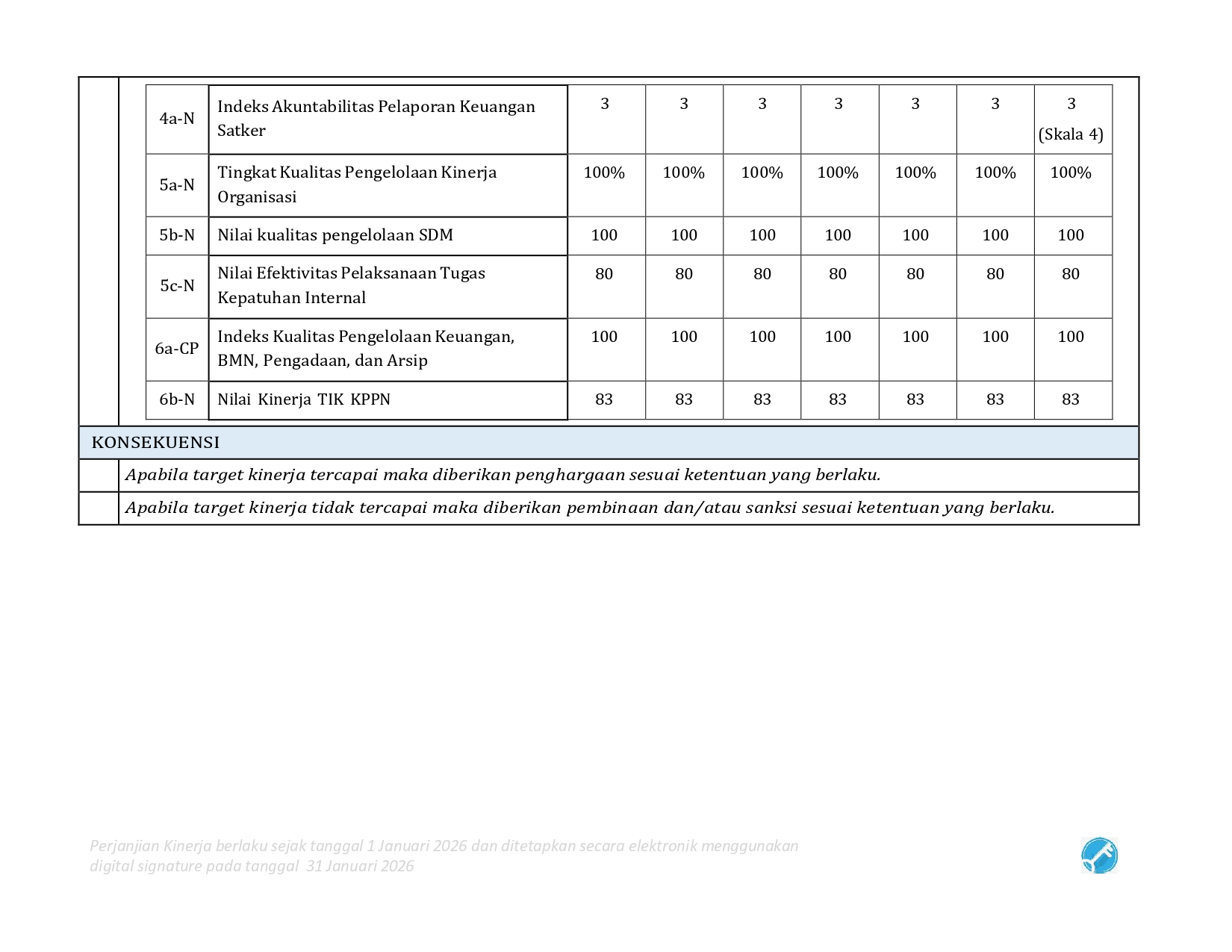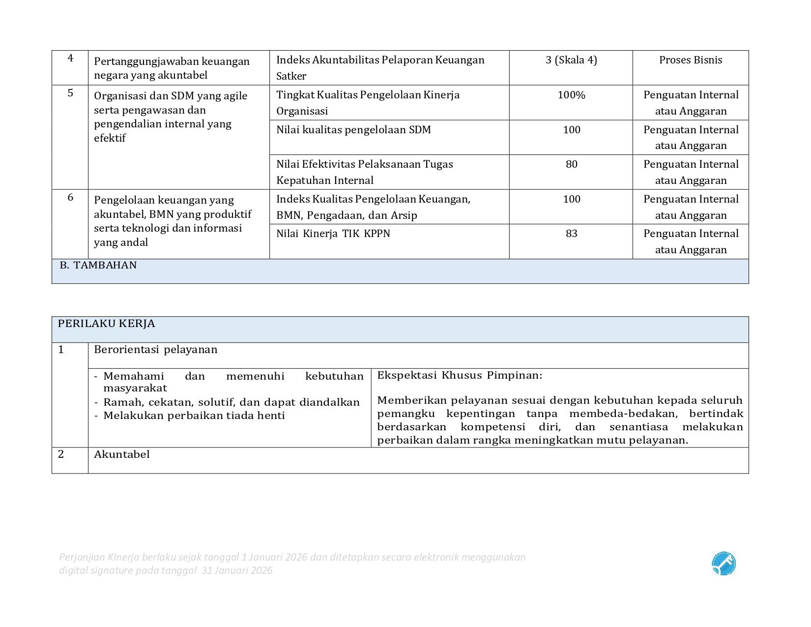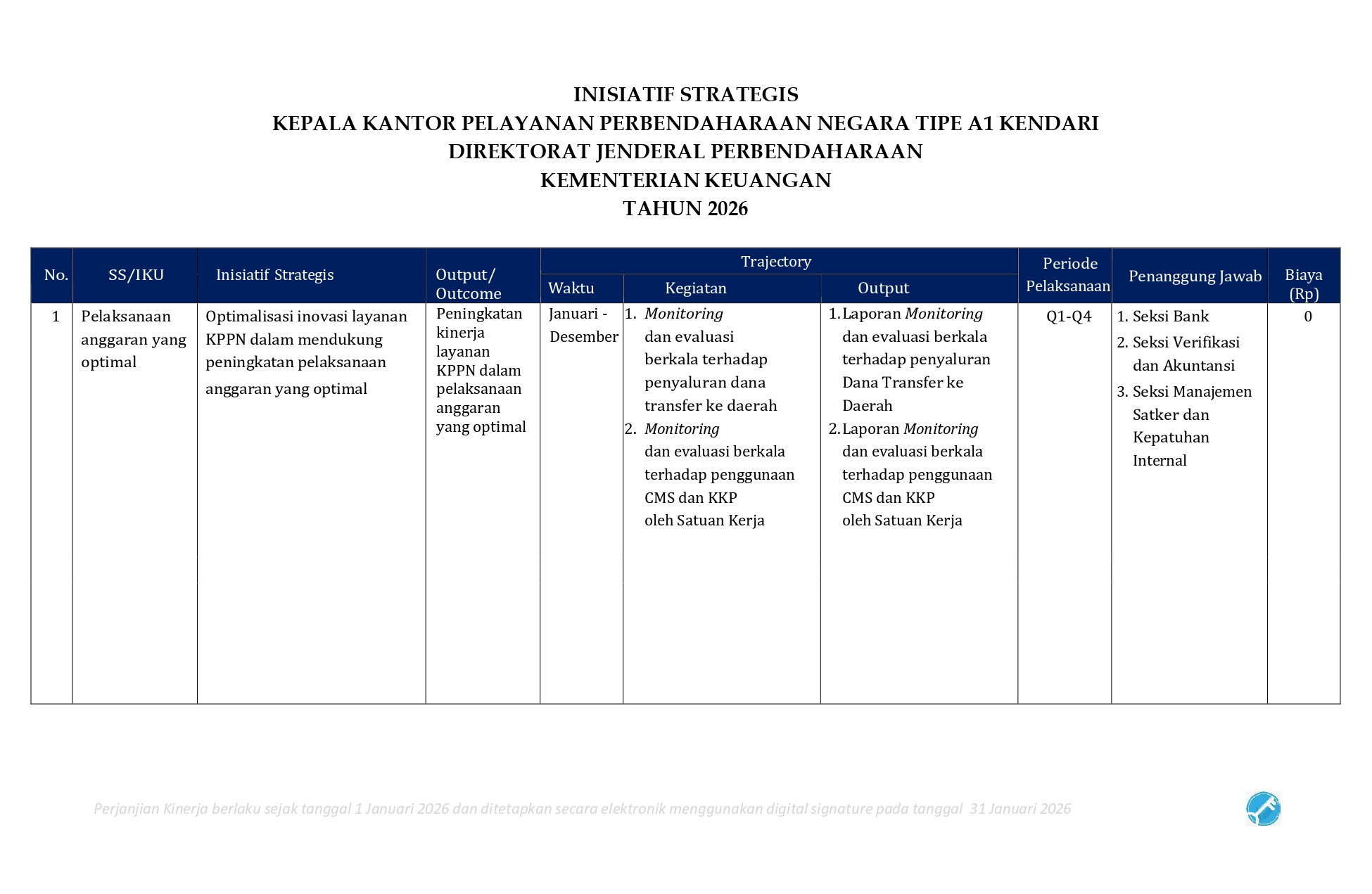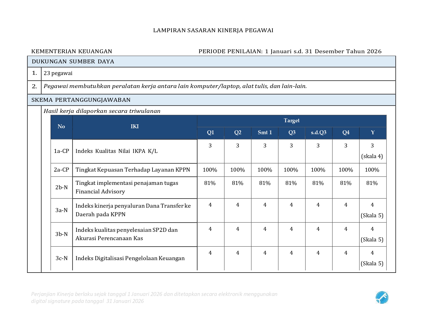 Berikut adalah Dokumen Perjanjian Kinerja KPPN Kendari Tahun 2026: