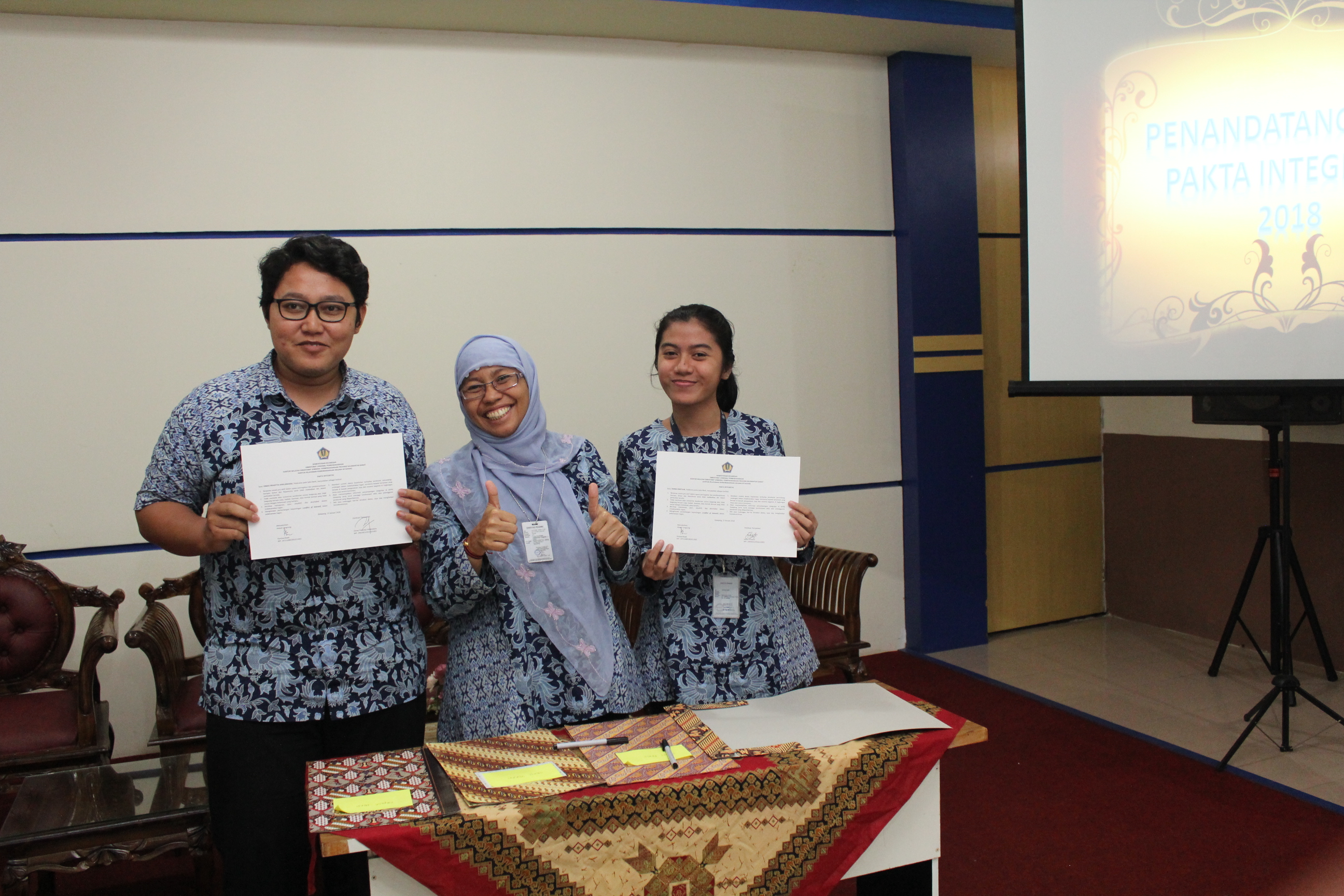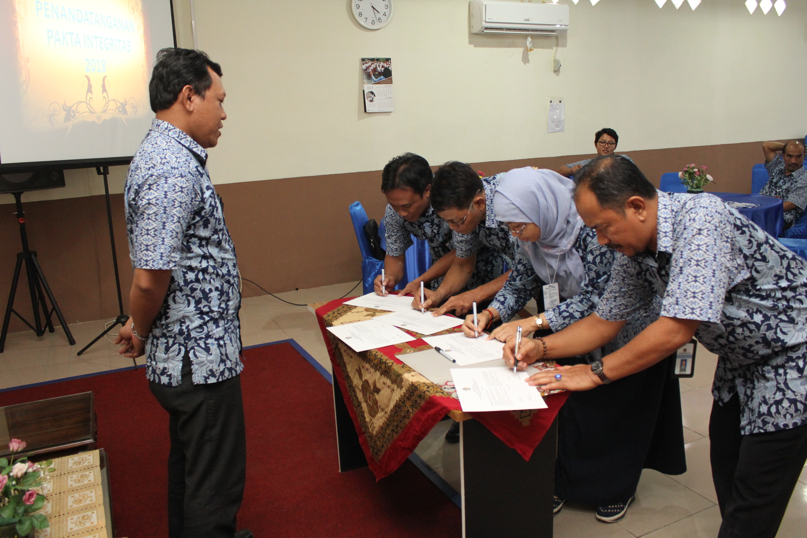 Penandatanganan Pakta Integritas dimulai dari Subbagian umum, dilanjutkan oleh seksi PDMS, seksi Bank, dan seksi VERAKI. Para pelaksana menandatangani pernyataan bersama kepala seksi masing-masing. Kemudian, Kepala seksi menandatangani pakta integritasnya bersama Kepala KPPN Ketapang.