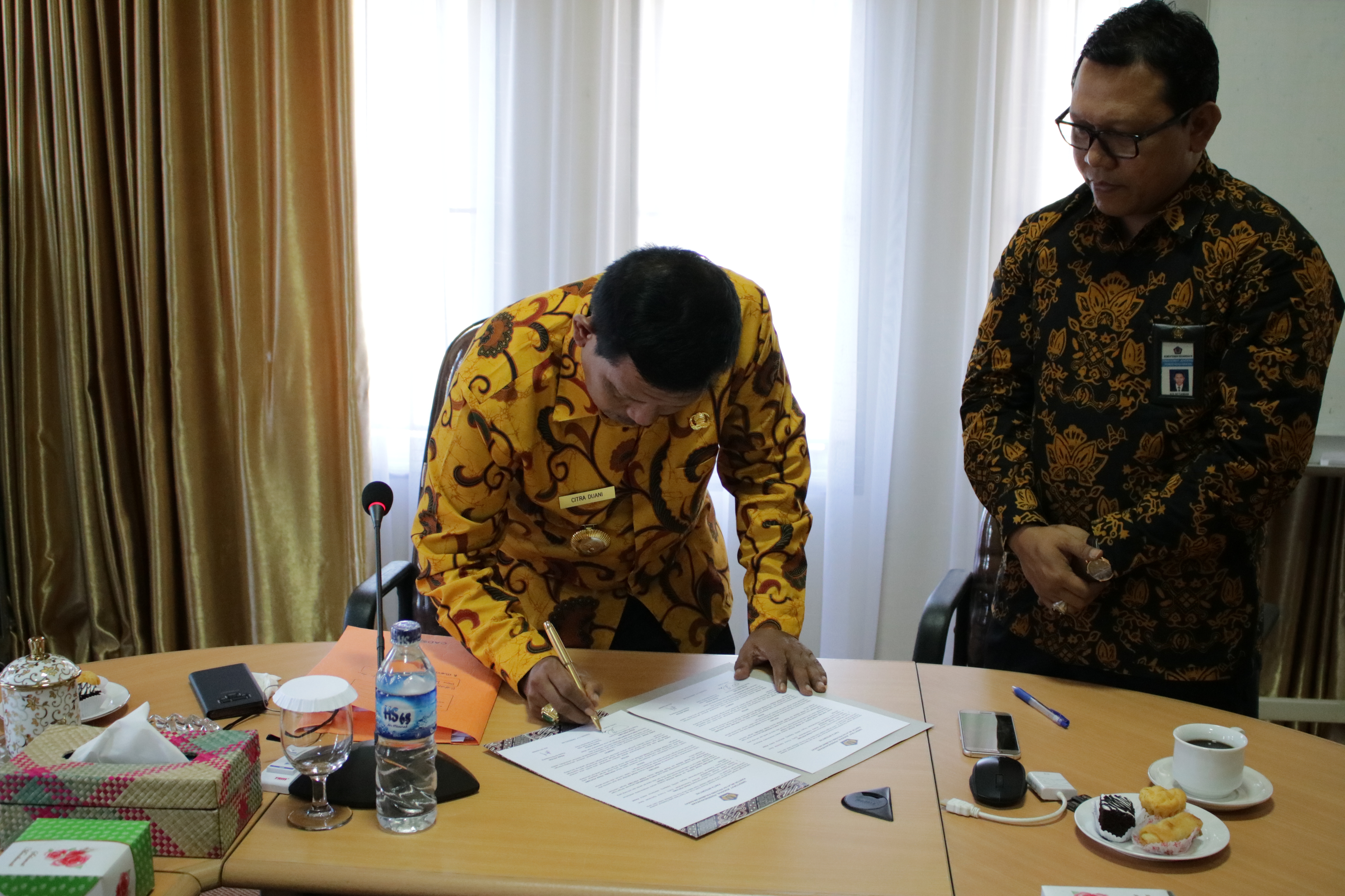 Selain itu, Pakta Integritas tersebut merupakan pernyataan dari kedua belah pihak bahwa dalam melaksanakan tugas pelayanannya tidak akan meminta atau menerima pemberian secara langsung atau tidak langsung berupa suap, hadiah, bantuan atau bentuk lainnya yang tidak sesuai dengan peraturan perundang-undangan.