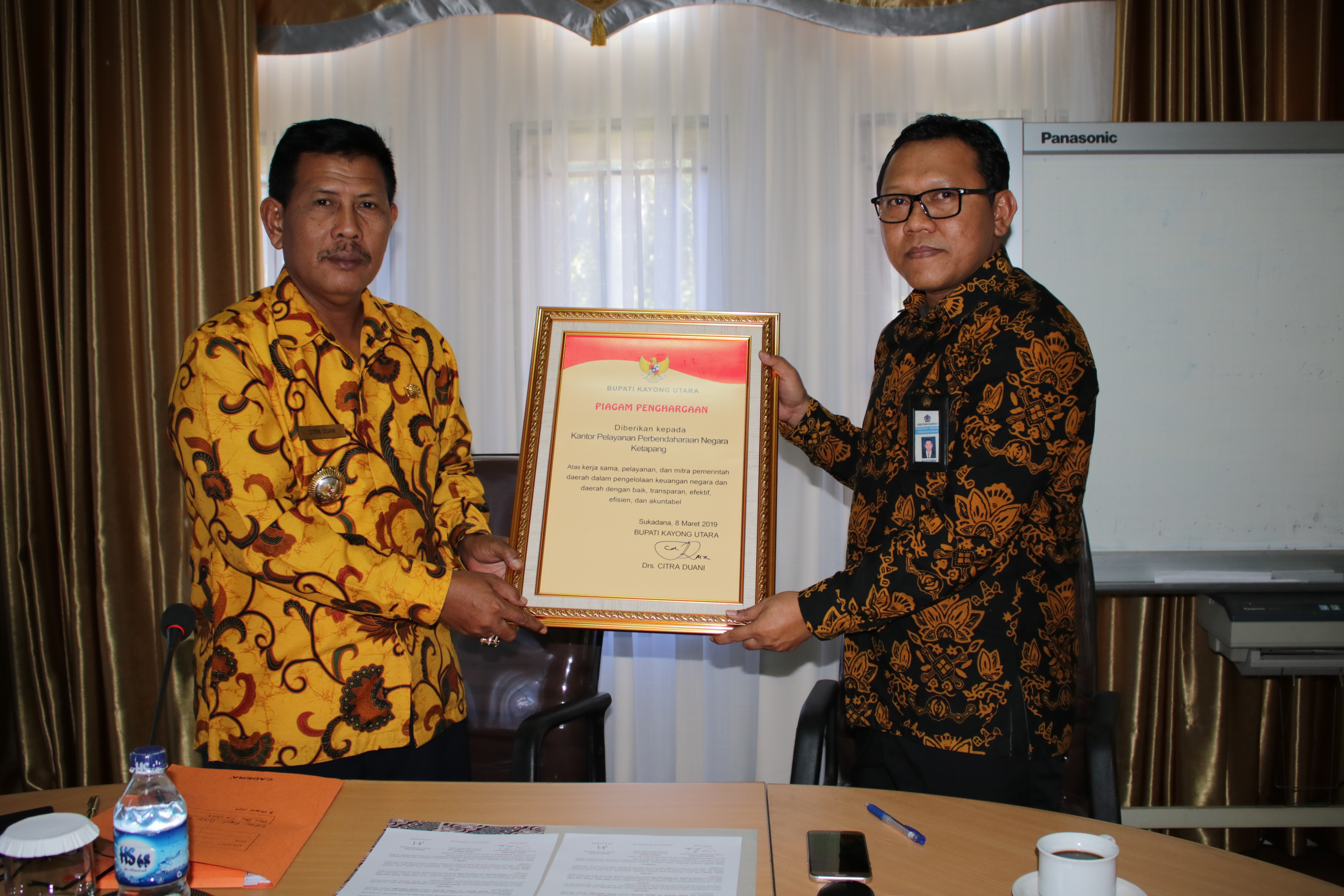 Jumat, 8 Maret 2019 bertempat di ruang rapat Bupati Kayong Utara diadakan penandatangan Pakta Integritas antara Kepala KPPN Ketapang (Adi Setiawan) dan Bupati Kayong Utara (Citra Duani) terkait penyaluran DAK Fisik dan Dana Desa. Penandatangan Pakta Integritas ini dimaksudkan sebagai salah satu upaya untuk mewujudkan KPPN Ketapang sebagai Wilayah Bebas Korupsi (WBK).