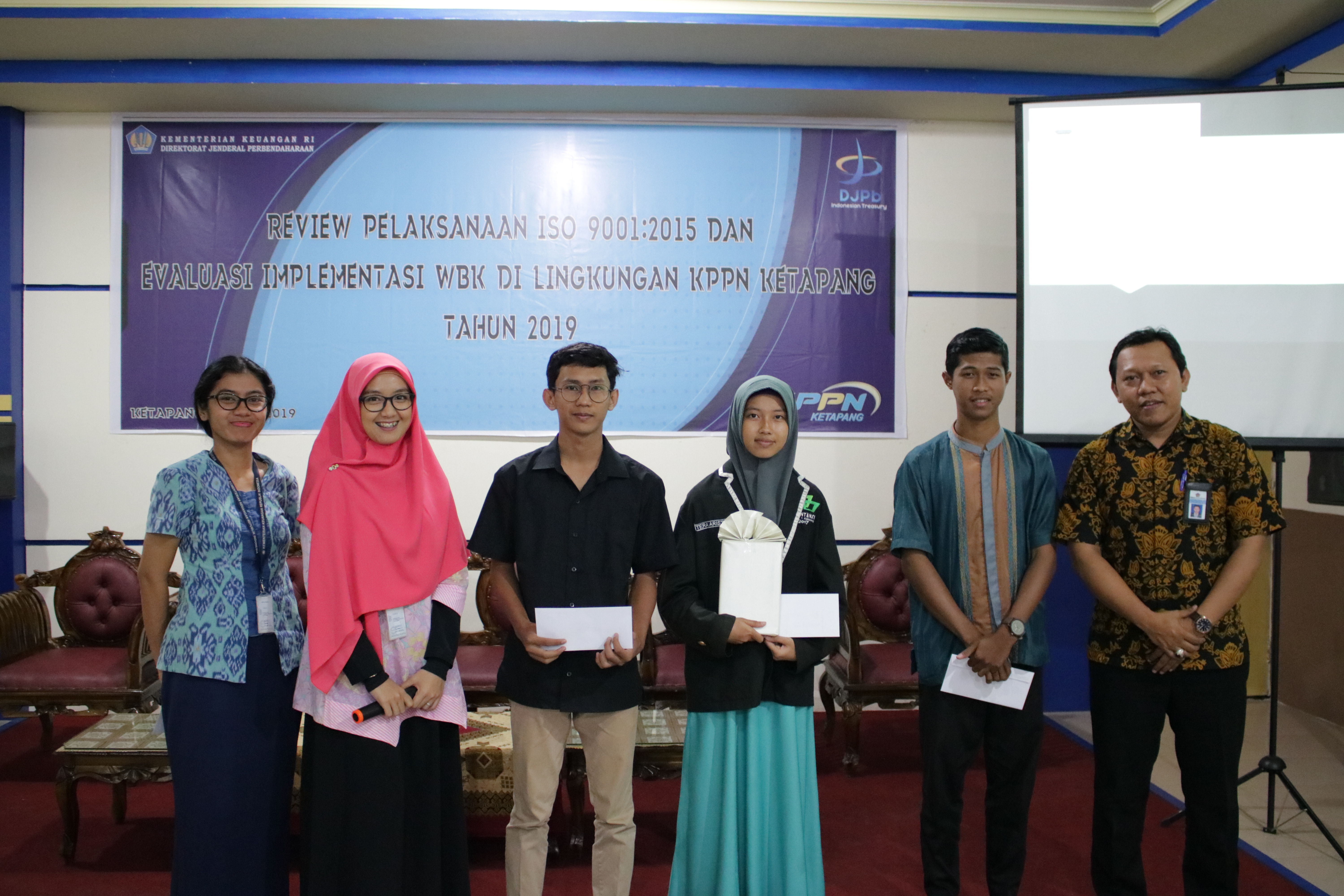 Pada hari Jumat, 10 Mei 2019, KPPN Ketapang mengundang teman-teman dari beberapa SMA di Ketapang. Teman-teman ini merupakan kandidat terpilih dalam lomba menulis yang diselenggarakan oleh KPPN Ketapang sebelumnya. Tulisan terbaik mendapatkan hadiah berupa buku, yang diharapkan dapat terus menumbuhkan minat literasi anak-anak milenial khususnya dalam hal menulis. Selain itu, teman-teman dari SMA di Ketapang ini juga diberikan informasi mengenai penerapan ZI WBK/ WBBM di lingkungan KPPN Ketapang. Pengenalan terhadap ZI WBK/WBBM ini bertujuan untuk memberikan edukasi tentang korupsi dan gratifikasi serta peran masyarakat untuk mendukung implementasi ZI WBK/WBBM dengan ikut mengawasi ASN dan kantor-kantor vertikal yang mengikuti penilaian ZI WBK/ WBBM.