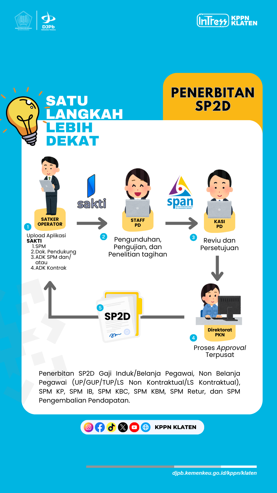 - Satuan Kerja menerima informasi terkait persetujuan/penolakan penerbitan SP2D melalui Aplikasi SAKTI.