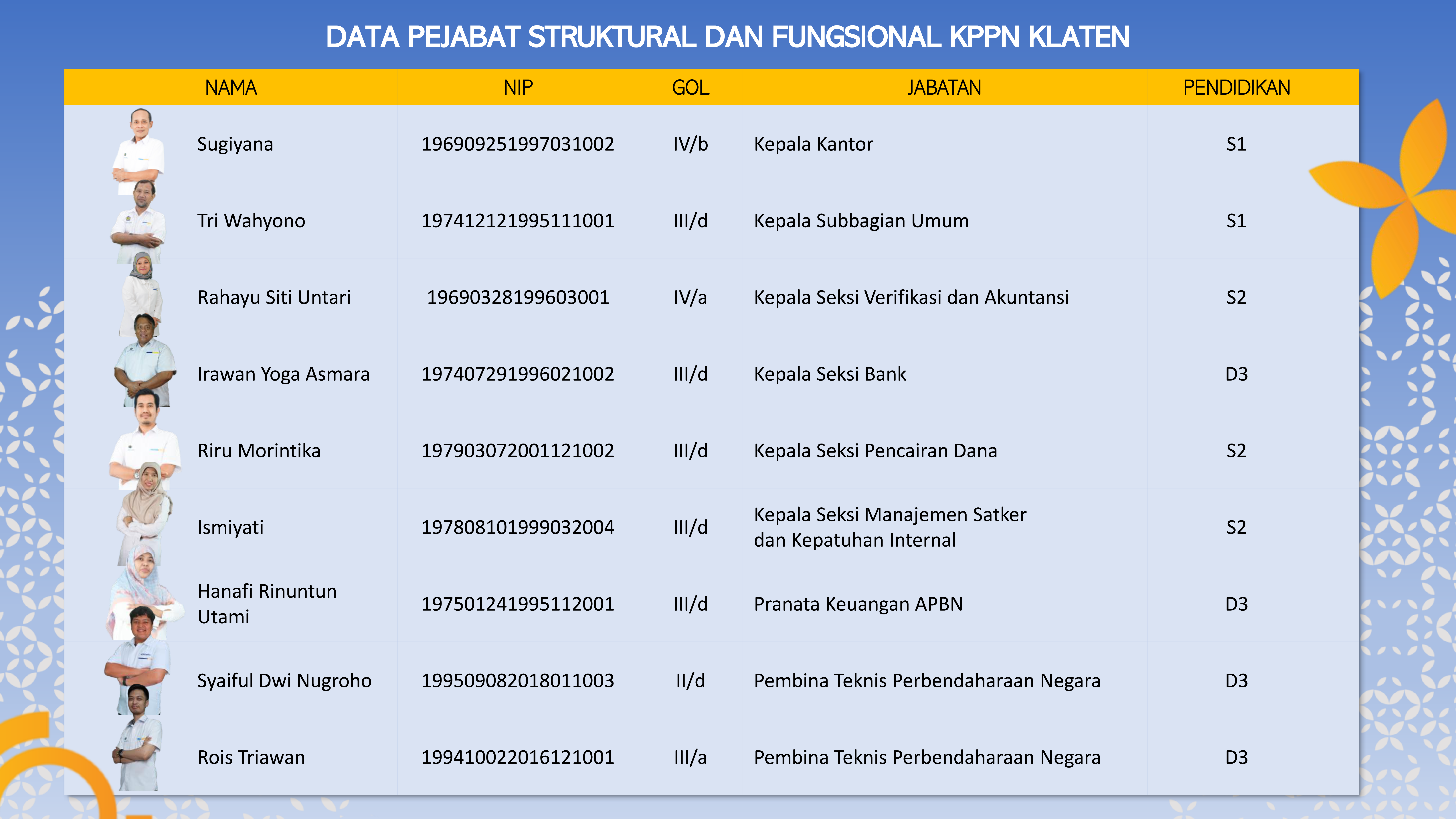 | Merupakan sebuah apresiasi yang dituangkan melalui Surat Kepala KPPN Klaten terhadap satuan kerja dalam hal penyampaian LPJ dan SPM Gaji Induk tercepat ke KPPN sebelum tanggal berakhirnya penyampaian. |
