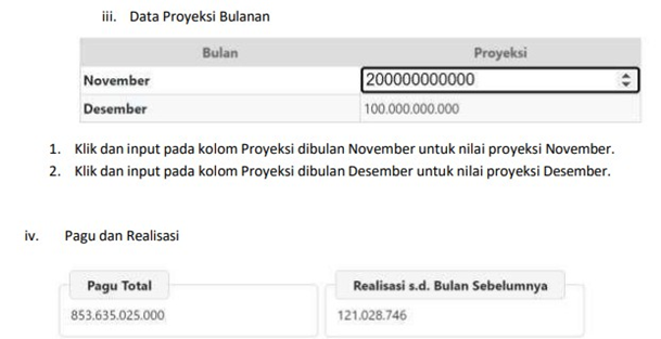 - Proyeksi pengeluaran bulanan dapat berbeda dengan halaman III DIPA.