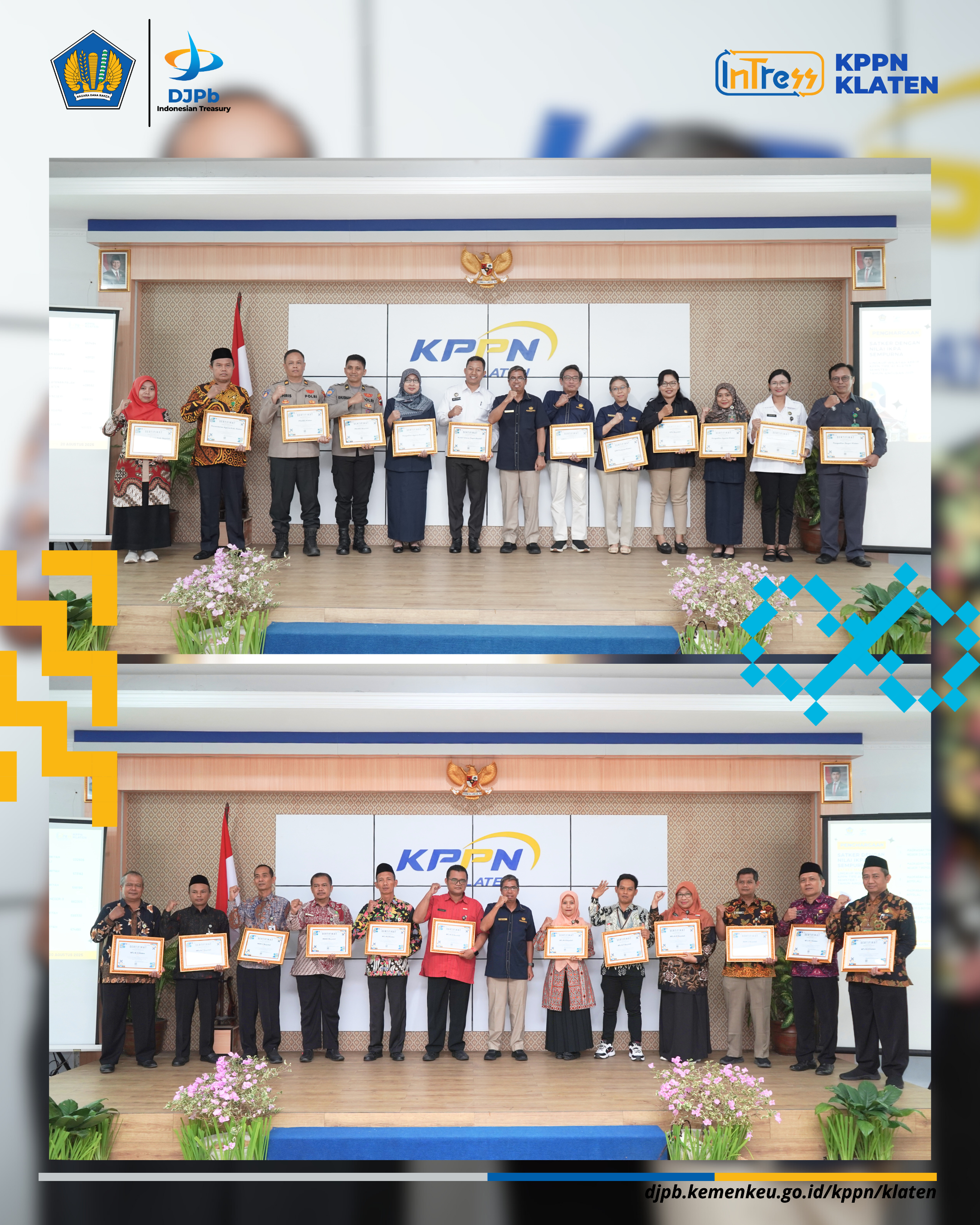 Apresiasi yang diberikan KPPN Klaten diharap mampu menambah semangat seluruh satuan kerja untuk dapat mengelola APBN dengan lebih transparan, akuntabel, efektif, efisien dan berorientasi hasil demi Indonesia maju, rakyat sejahtera.