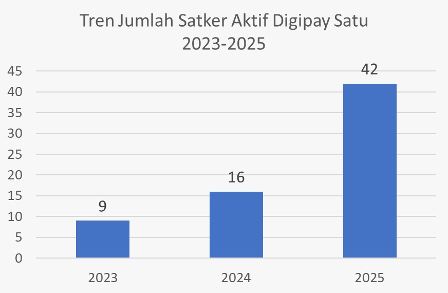 Dari segi jumlah satker yang aktif dalam menggunakan Digipay satu, juga mengalami peningkatan, sebagaimana terlihat dalam grafik berikut: