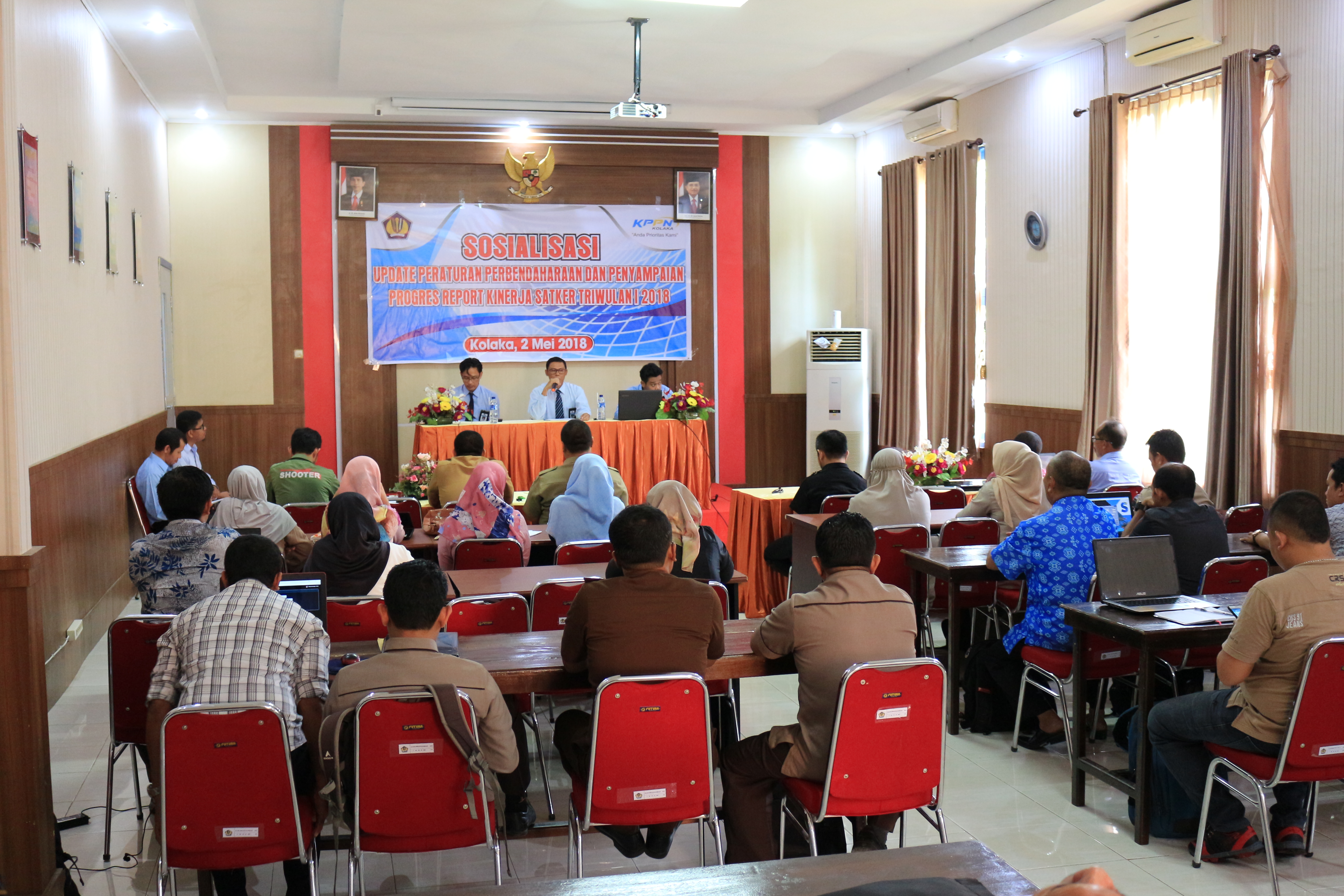 Kolaka.djpbn.kemenkeu.go.id - Kantor Pelayanan Perbendaharaan Negara (KPPN) Kolaka menyelenggarakan sosialisasi peraturan baru kepada Satuan Kerja di lingkup KPPN Kolaka pada 2 Mei 2018. Sosialisasi tersebut dilaksanakan bersamaan dengan Evaluasi Pelaksanaan Anggaran Triwulan I Tahun Anggaran 2018. Acara dilaksanakan di Aula KPPN Kolaka yang beralamat di Jalan Balandete KM. 6 (Belakang Gelora Balandete) Kabupaten Kolaka. Acara dimulai tepat pada pukul 10.00 WITA. Sosialisasi dihadiri oleh rekan Satuan Kerja Lingkup KPPN Kolaka.