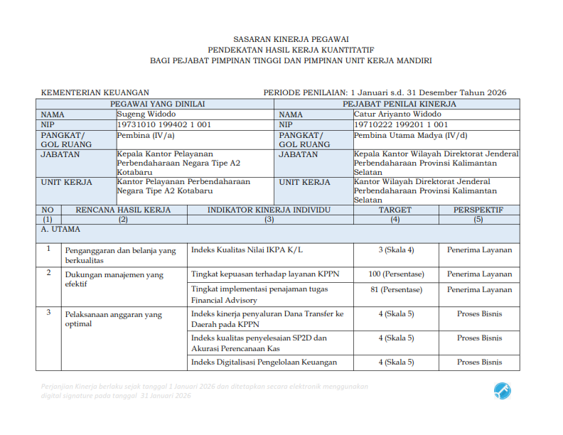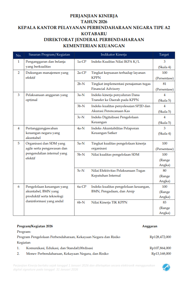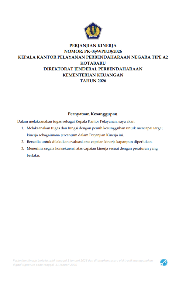 PERJANJIAN KINERJA KPPN KOTABARU TAHUN 2026