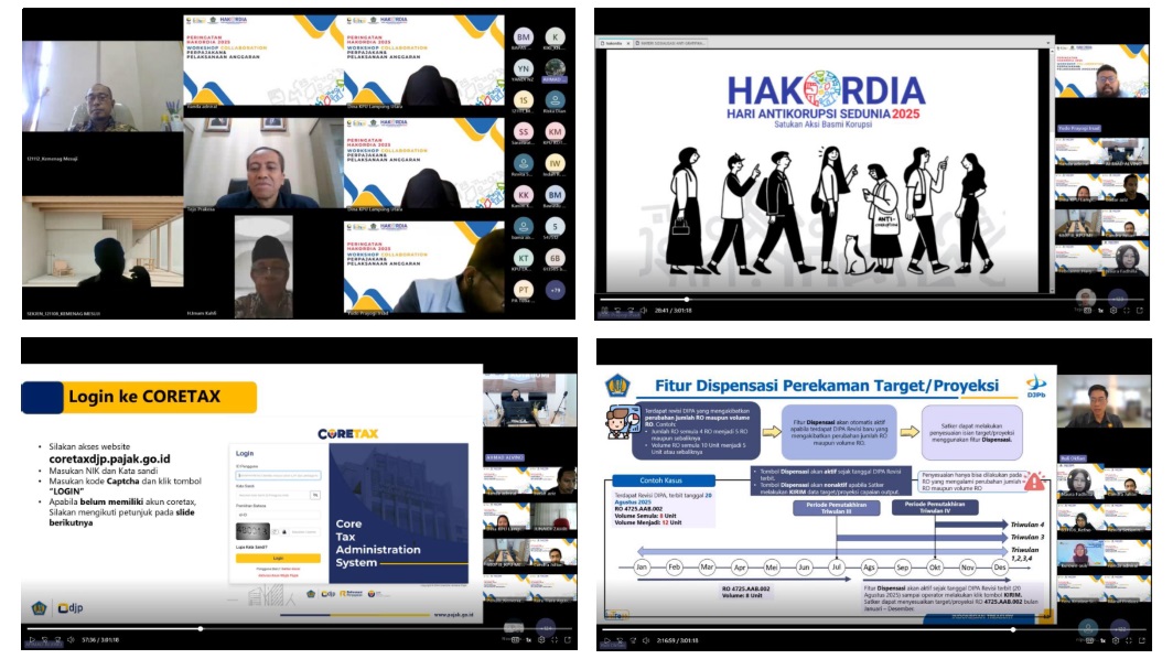 Kegiatan Workshop dibuka dengan sambutan oleh Kepala KPPN Metro, Bapak Tejo Prakosa. Pada kesempatan ini beliau menyampaikan pentingnya pengelola keuangan dalam memahami proses pelaksanaan anggaran, sehingga pelaksanaannya dapat berjalan sesuai dengan prosedur dan ketentuan, dan juga harus memperhatikan kinerja pelaksanaan ABPN pada setiap Indikator Kinerja yang telah ditetapkan. Selain itu beliau juga menyampaikan kepada seluruh Pengelola Keuangan yang berhubungan dengan layanan KPPN Kotabumi agar jangan pernah memberikan sesuatu dalam bentuk apapun ke petugas layanan, dan agar melaporkan apabila terdapat petugas yang meminta sesuatu (uang/barang). Kemudian beliau juga melanjutkan dengan menyampaikan press release APBN untuk periode s.d. 31 Desember 2025.