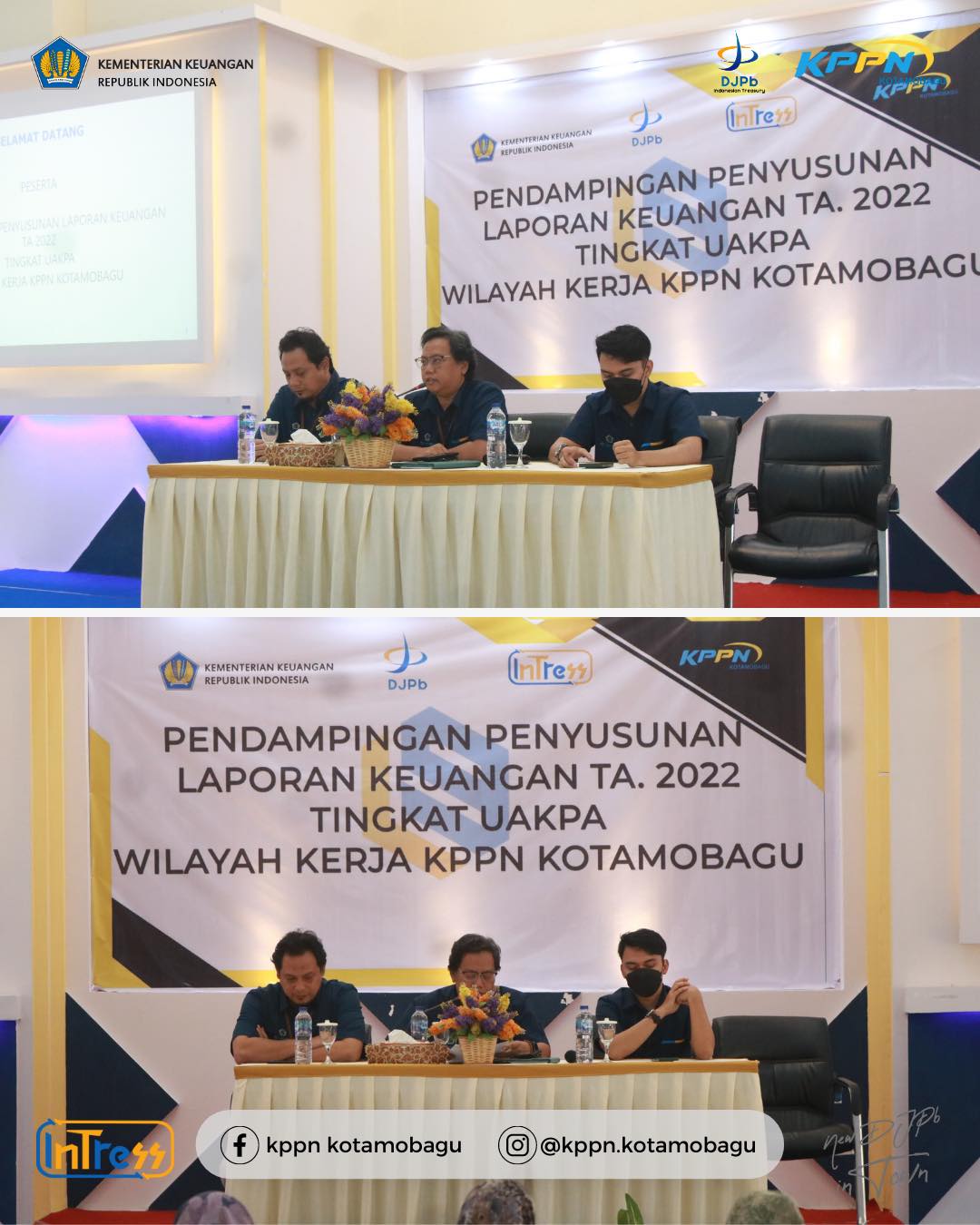 Sehubungan dengan penyusunan dan penyampaian Laporan Keuangan Kementerian Negara/Lembaga (LKKL) Tahun 2022 Unaudited, KPPN Kotamobagu telah melaksanakan Pendampingan Penyusunan Laporan Keuangan Tingkat UAKPA Tahun 2022 Unaudited pada Hari Kamis, 19 Januari 2023 bertepat di Aula KPPN Kotamobagu.