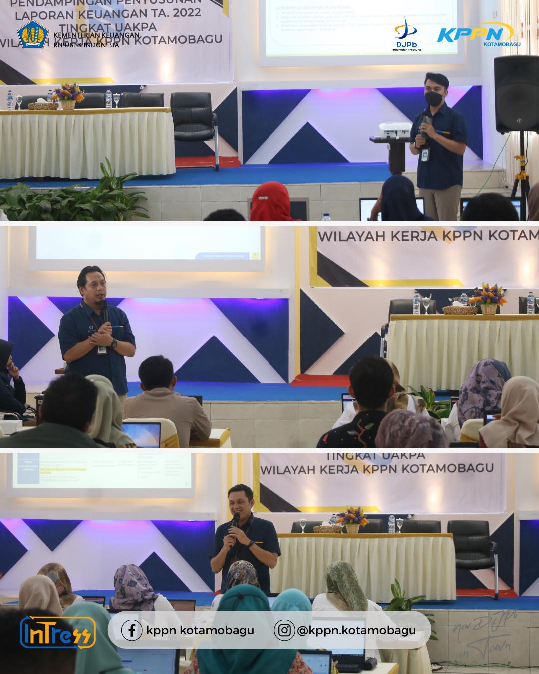Kegiatan ini dihadiri oleh semua operator pelaporan lingkup satuan kerja KPPN Kotamobagu. Dengan adanya kegiatan ini, diharapkan dapat meningkatkan pemahaman petugas pelaporan dalam penyusunan Laporan Keuangan Tingkat UAKPA dengan baik dan berkualitas.