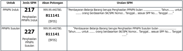 - Menggunakan kode Jenis SPM 217 (Penghasilan PPNPN Induk).