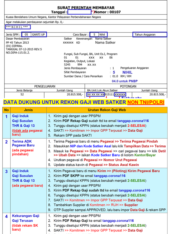 - SPM beserta Detail CoA dari SAKTI >> Uraian dalam SPM mencantumkan gaji terusan ke-berapa dan bulan gaji terusan dimaksud;