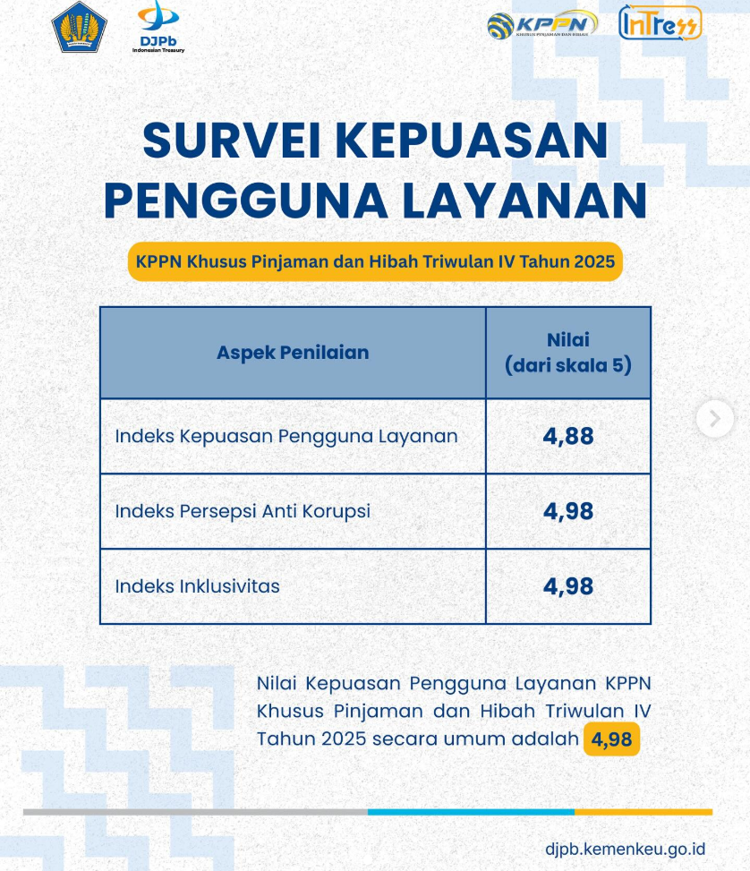 HASIL SURVEI KEPUASAN PENGGUNA LAYANAN KPPN KHUSUS PINJAMAN DAN HIBAH TRIWULAN IV TAHUN 2025 |