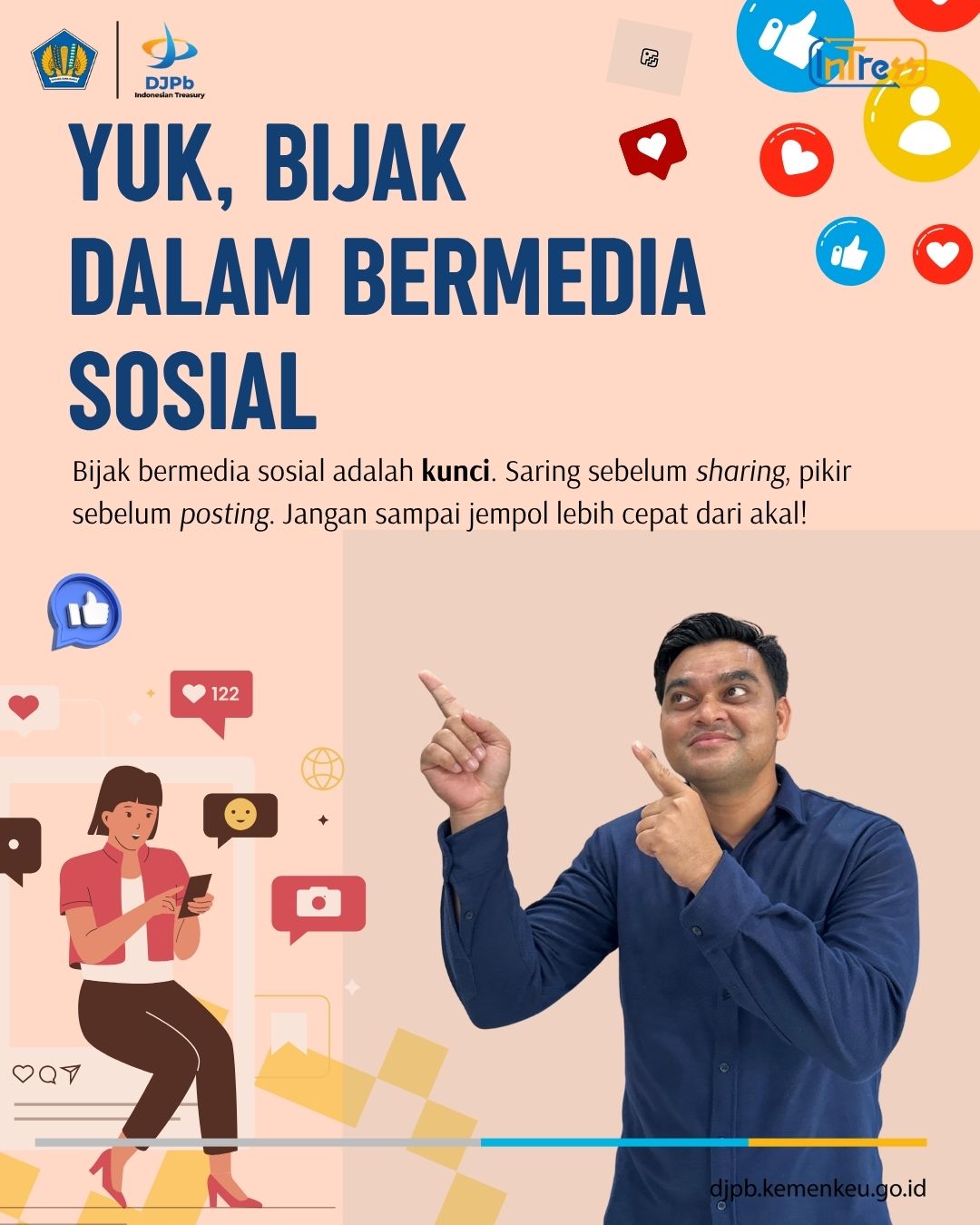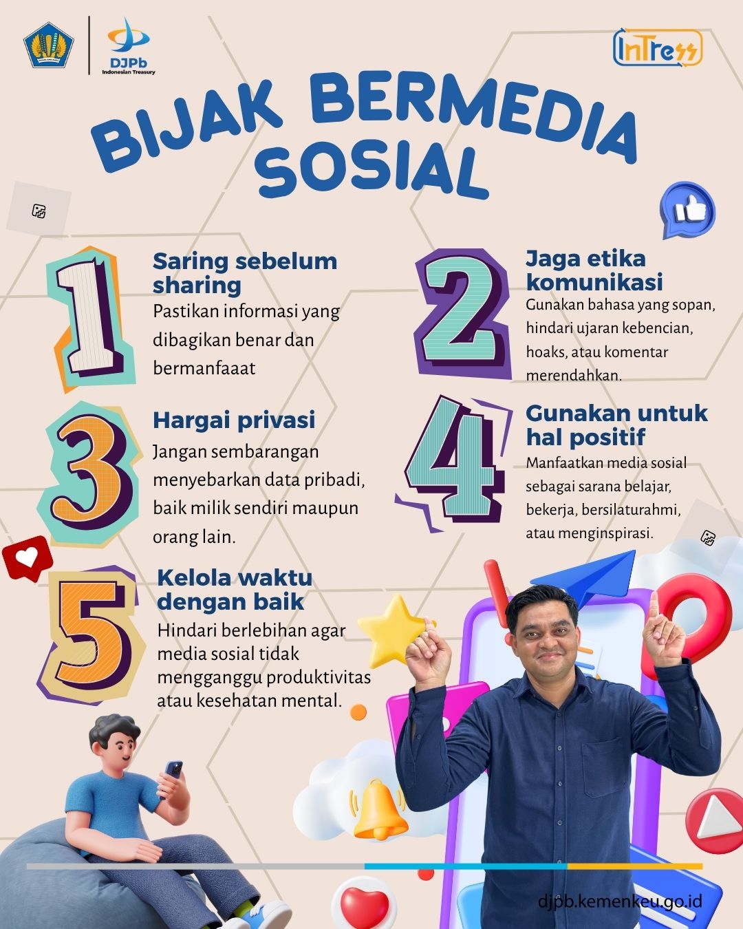 Mari gunakan media sosial sebagai sarana untuk menebar ilmu, berkarya, dan menginspirasi. Karena setiap interaksi digital adalah refleksi nilai dan tanggung jawab kita sebagai insan berintegritas.