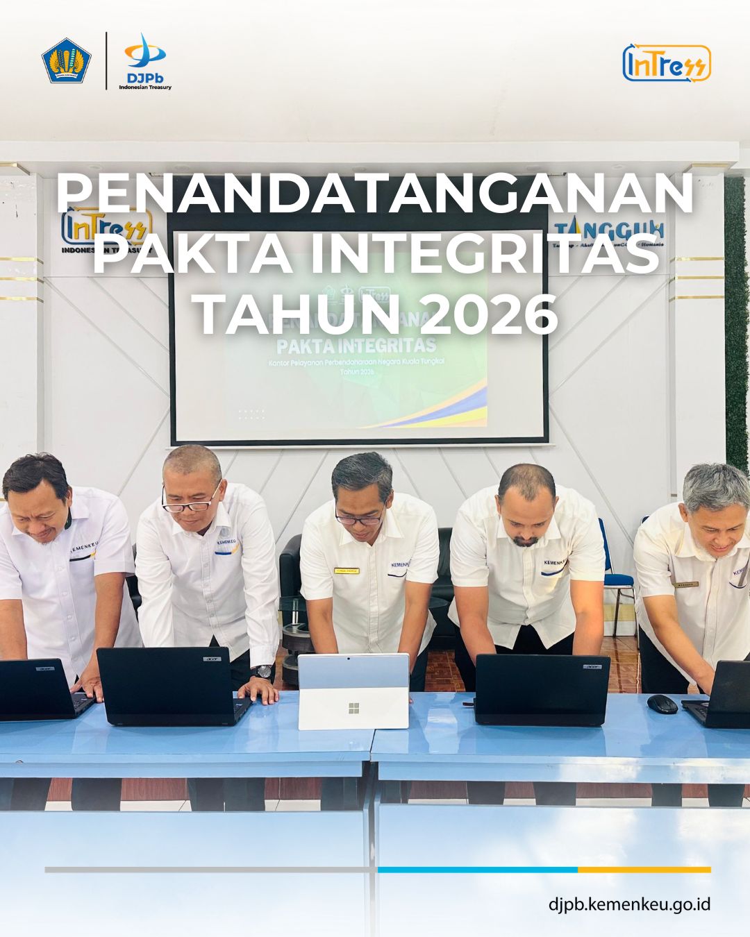 Pada Senin, 12 Januari 2026, seluruh pejabat dan pegawai Kantor Pelayanan Perbendaharaan Negara (KPPN) Kuala Tungkal melaksanakan kegiatan penandatanganan Pakta Integritas Tahun 2026. Kegiatan ini merupakan bentuk komitmen bersama dalam menjunjung tinggi nilai integritas, transparansi, dan akuntabilitas dalam pelaksanaan tugas sebagai aparatur pelayanan publik.