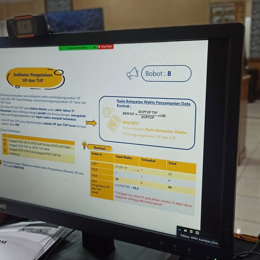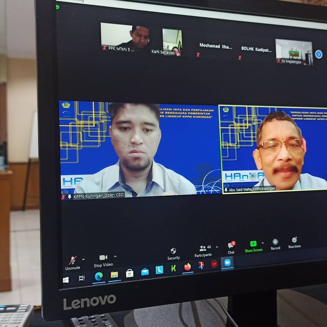 KPPN Kuningan bersinergi dengan KPP Pratama Kuningan mengadakan Sosialisasi Pajak untuk Bendahara Pemerintah. Sosialisasi diadakan secara daring. Selain materi tentang perpajakan, Bapak Miftahul Ulum selaku Pejabat Fungsional Perbendaharaan menyampaikan materi tentang IKPA (Indikator Pelaksanaan Anggaran). Tak ketinggalan materi SAKTI Web Full Module juga disampaikan dalam kesempatan ini. Adanya kegiatan ini diharapkan Satker Mitra Kerja KPPN dapat meningkatkan kinerjanya dalam pelaksanaan APBN.