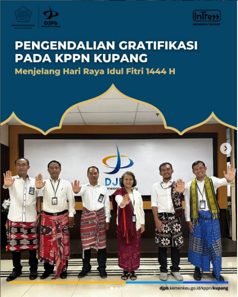 Menjelang momen Hari Raya Idul Fitri 1444 H, KPPN Kupang menegaskan bahwa seluruh layanan kepada seluruh stakeholder untuk tidak memberikan gratifikasi dalam bentuk apapun yang berhubungan dengan jabatan atau berlawanan dengan tugas dan fungsi pejabat/pegawai/PPNPN KPPN Kupang.