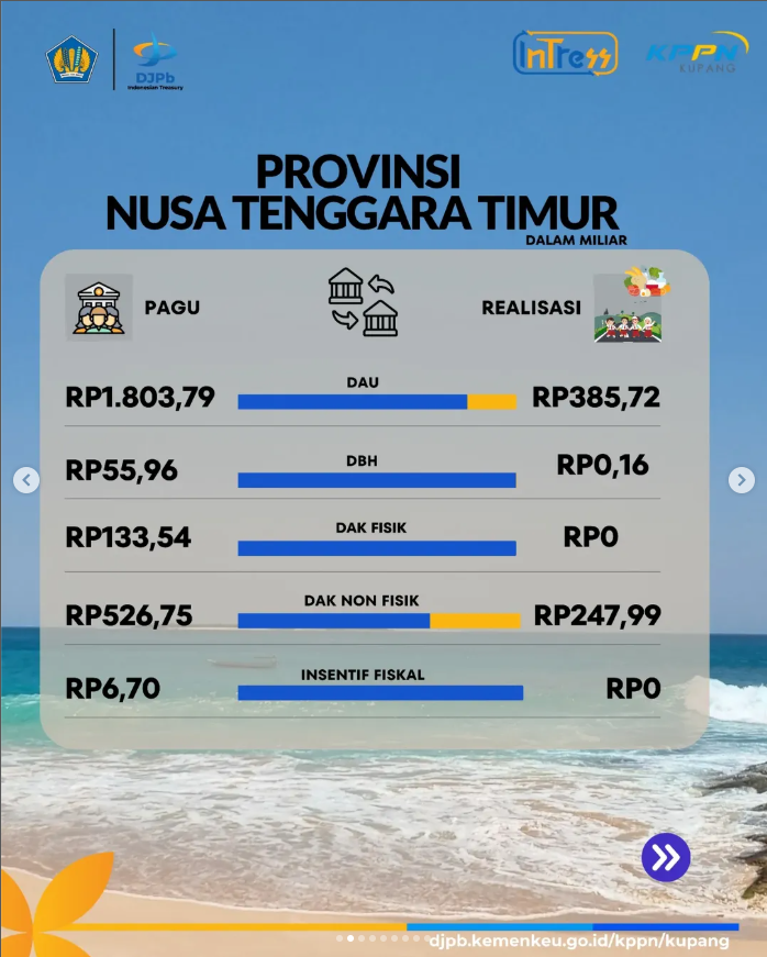 Realisasi Penyaluran Dana Transfer Ke Daerah di wilayah kerja KPPN Kupang untuk Periode Bulan Februari TA 2025