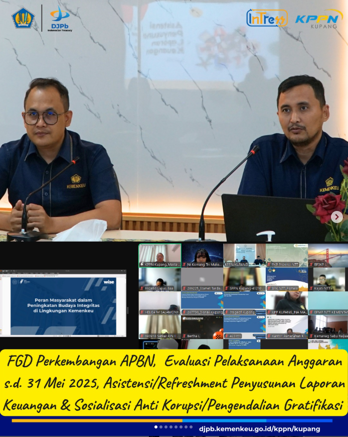 FGD Perkembangan APBN, Evaluasi Pelaksanaan Anggaran .s.d. 31 Mei 2025, Asistensi/Refreshment Penyusunan Laporan Keuangan dan Sosialisasi Anti Korupsi