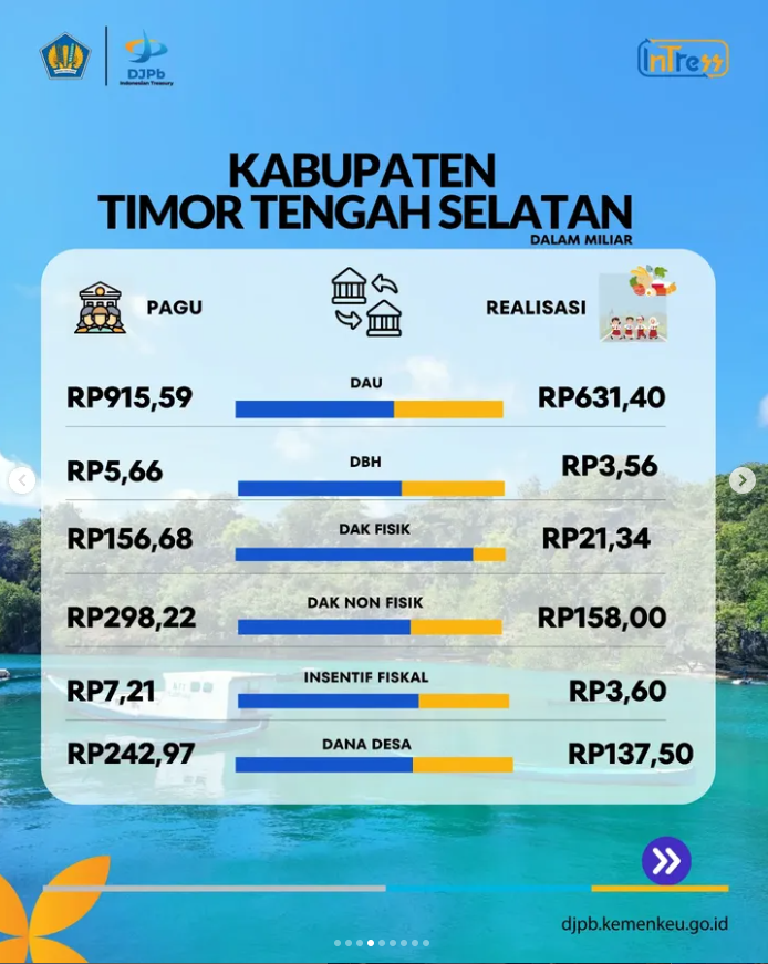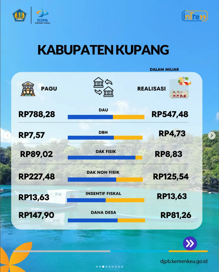 Realisasi Penyaluran Dana Transfer Ke Daerah di wilayah kerja KPPN Kupang untuk Periode sampai dengan Bulan Agustus TA 2025