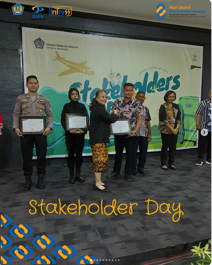 Hari Kamis (29/2) telah dilaksanakan Stakeholder Day Semester I Tahun 2022. Pada kegiatan KPPN Kupang mengapresiasi dan memberikan piagam atas kinerja terbaik mitra KPPN Kupang untuk capaian IKPA, penyampaian SPM, implementasi transaksi cashless dan penyampaian LPJ Bendahara serta pejabat perbendaharaan satker.